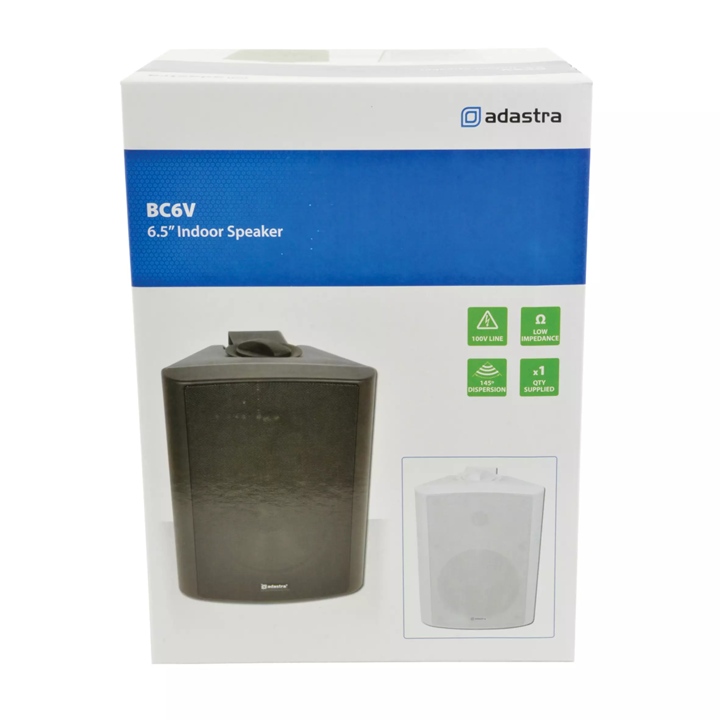 A range of indoor speakers, with ABS enclosures and a sturdy metal grille. Suitable for free standing or wall mounting via adjustable fixing bracket. The trapezoidal design allows for the enclosures to be mounted neatly into corners, making them ideal for most applications