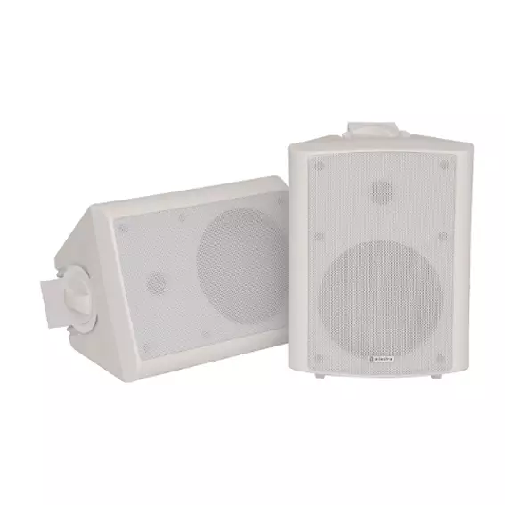 A range of compact 2-way stereo speakers, with ABS enclosures and a sturdy metal grille. Suitable for free standing or wall mounting via adjustable fixing bracket. The trapezoidal design allows for the enclosures to be mounted neatly into corners, making them ideal for Hi-Fi and surround sound applications.