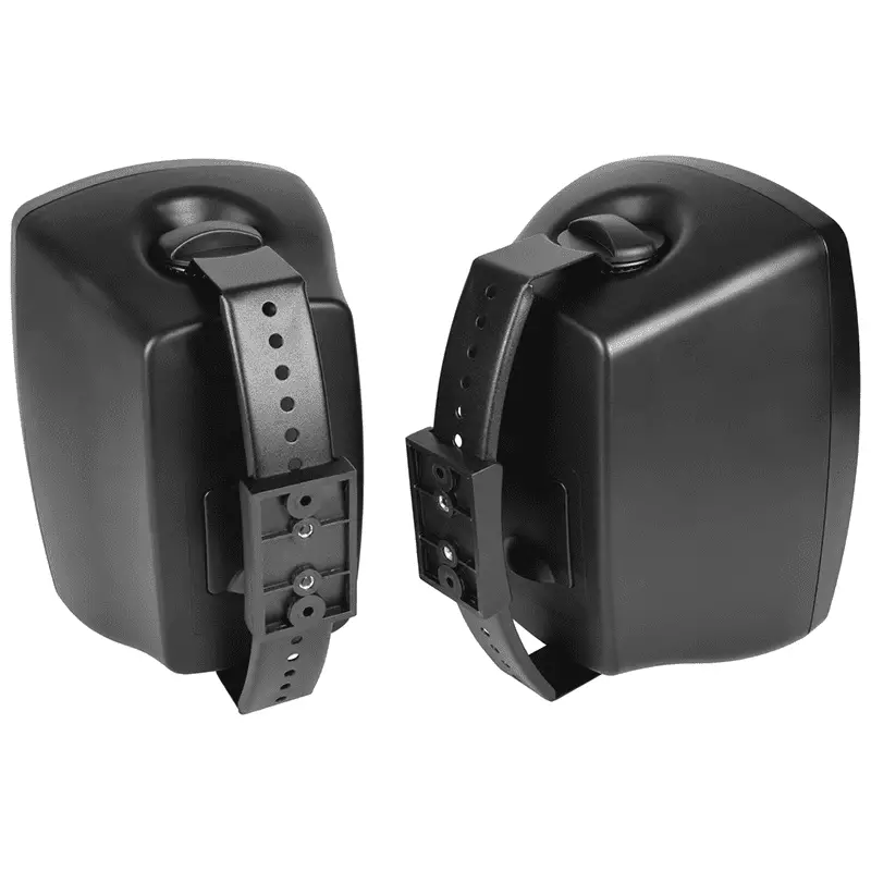 High quality IP44 weather resistant speakers with an extended low frequency driver and dome tweeter housed in an efficiently designed moulded cabinet. Each speaker is supplied with a laterally adjustable wall mounting bracket that can also set to various tilt positions for efficient directivity. Designed for indoor or outdoor background music and public address applications.