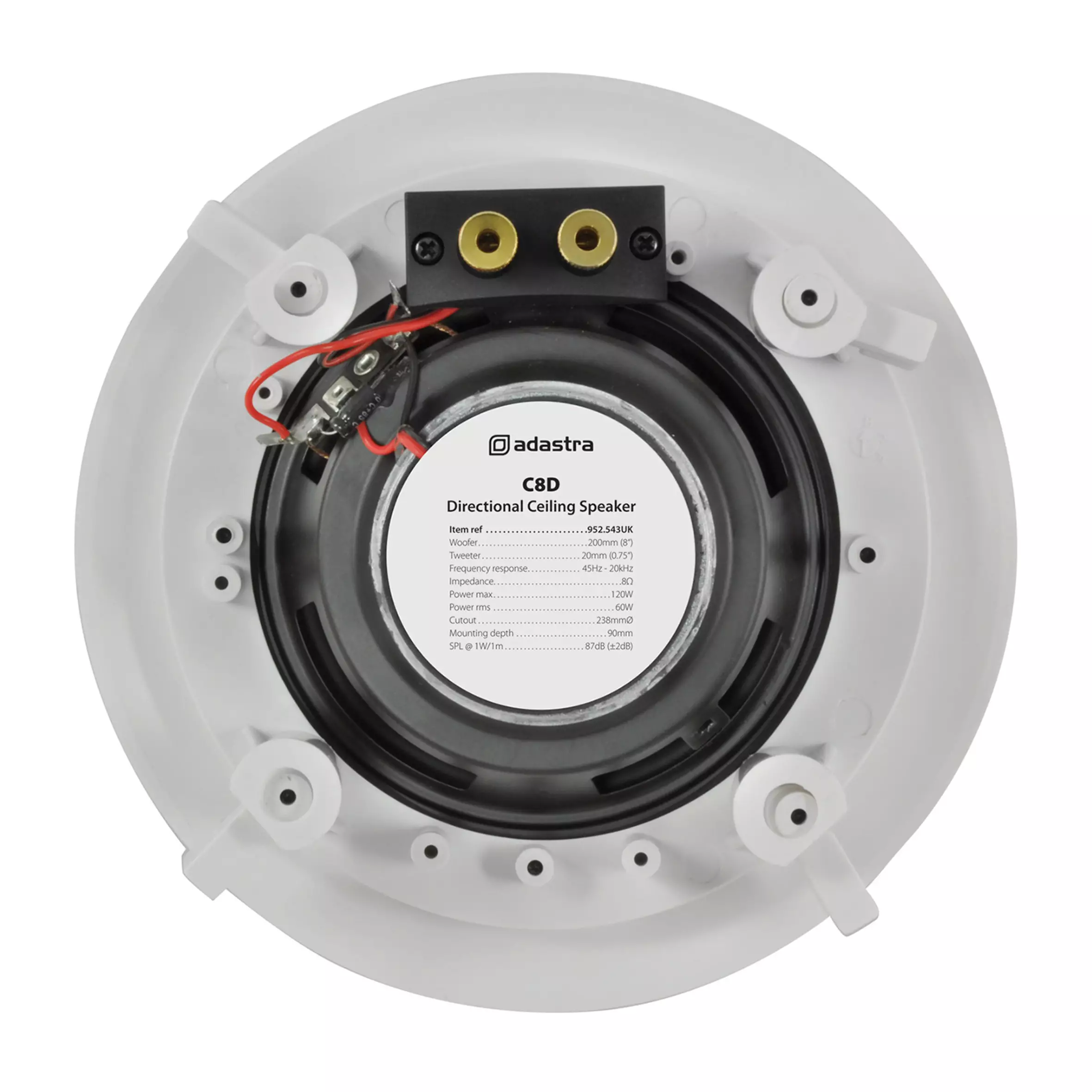 These easy fit ceiling speakers are ideal for main speakers, surround sound or remote speaker applications. The two-way design includes a Ferrofluid cooled silk dome tweeter and Polypropylene woofer with rubber surround to deliver the highest level sonic performance. The adjustable tweeter allows for the high frequencies to be focused in the direction of the listening area, this increases the flexibility when locating the speakers off-axis from the listeners.