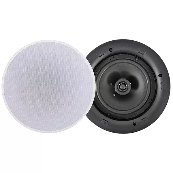 2-way ceiling speakers with flared baffle and a low profile magnetic grille. The main driver with concentric directional tweeter is operated via a rotary control with 5 x 100V volume tappings and an 8 Ohms option. Mount into suspended or false ceilings using the 4 “dog-ear” mounts to achieve a discreet, high quality sound installation.