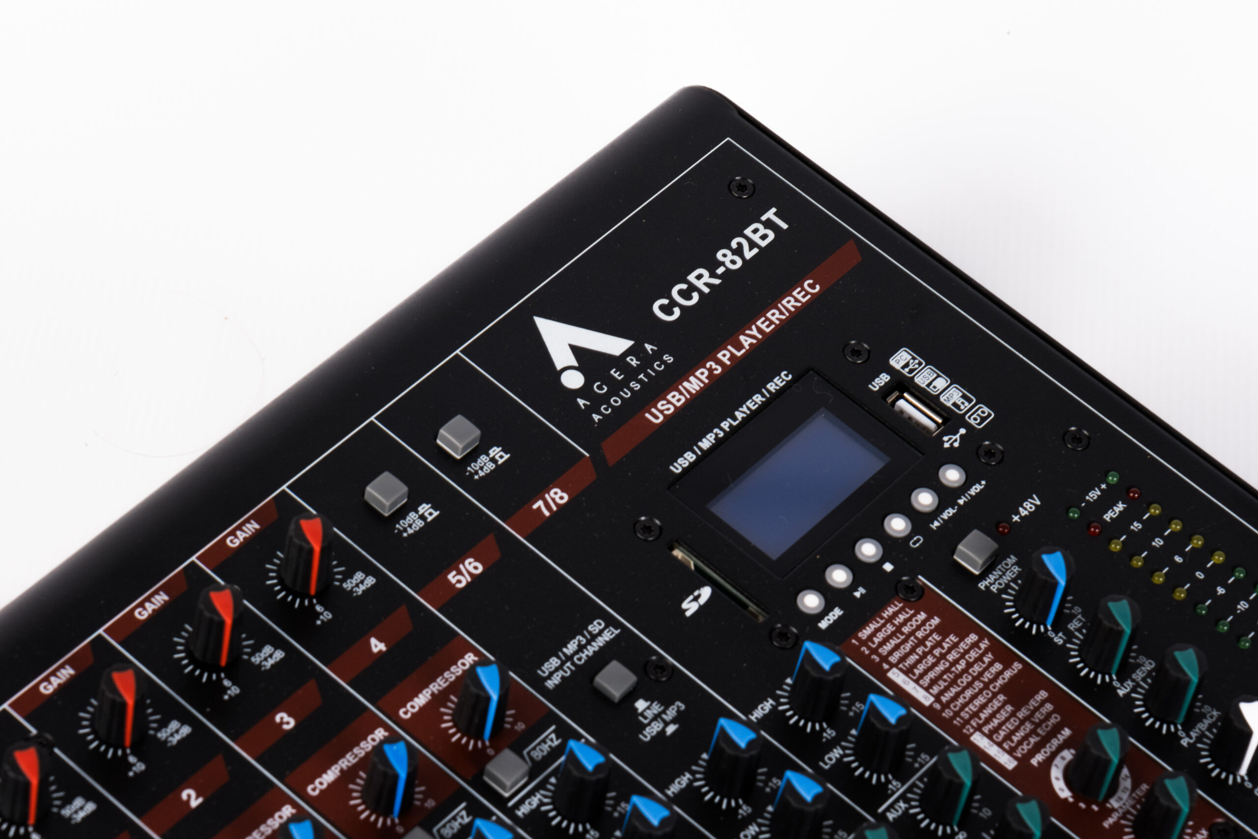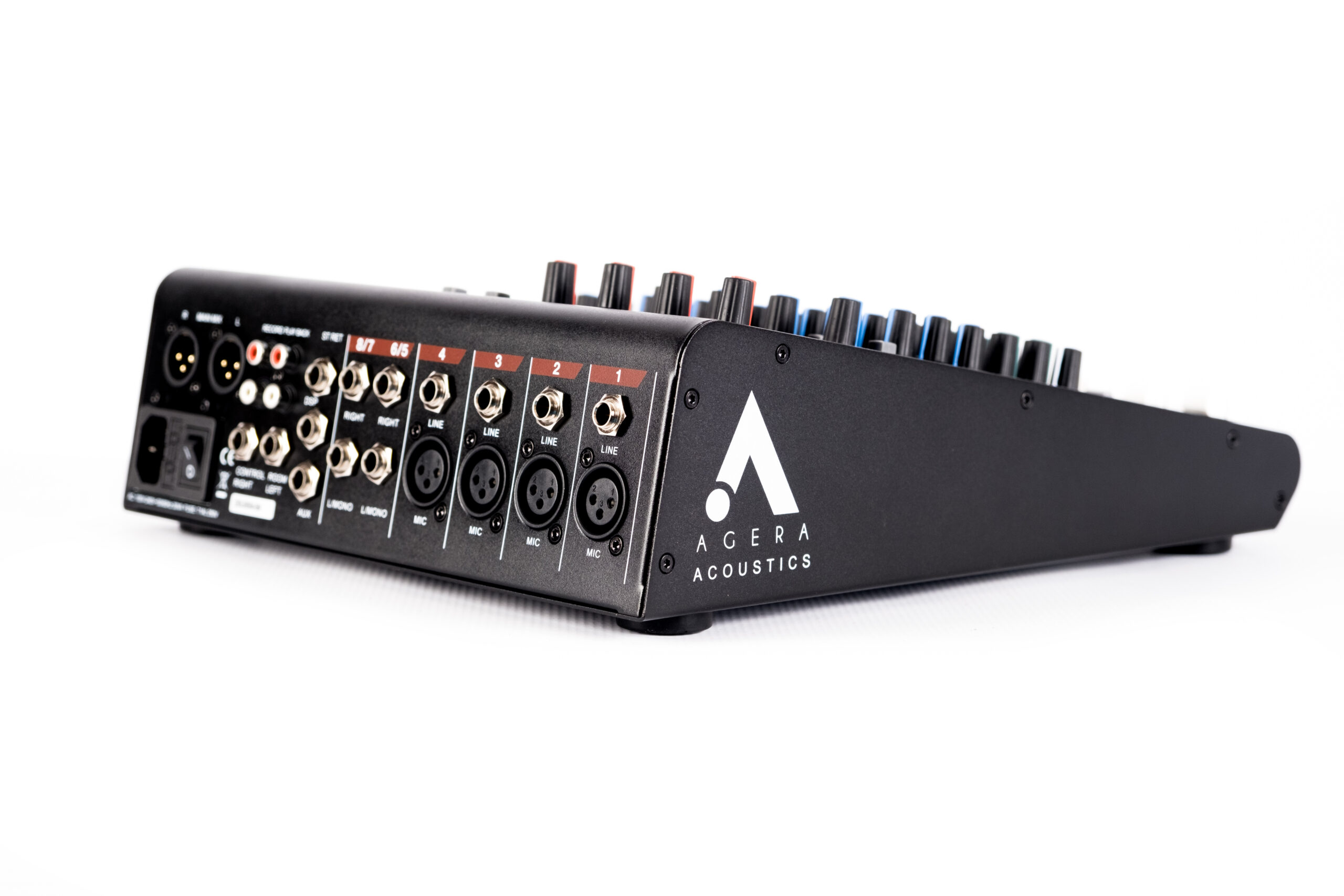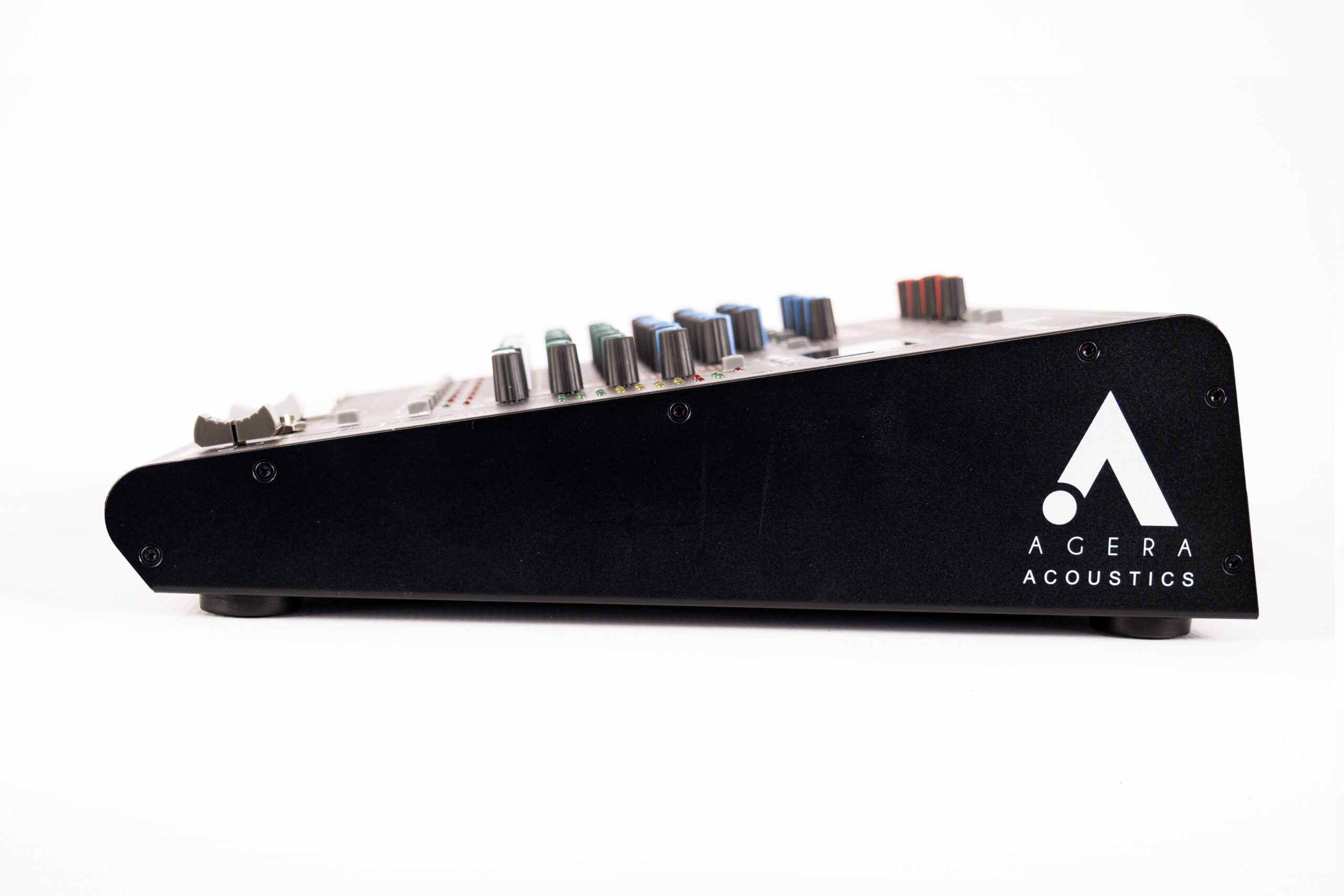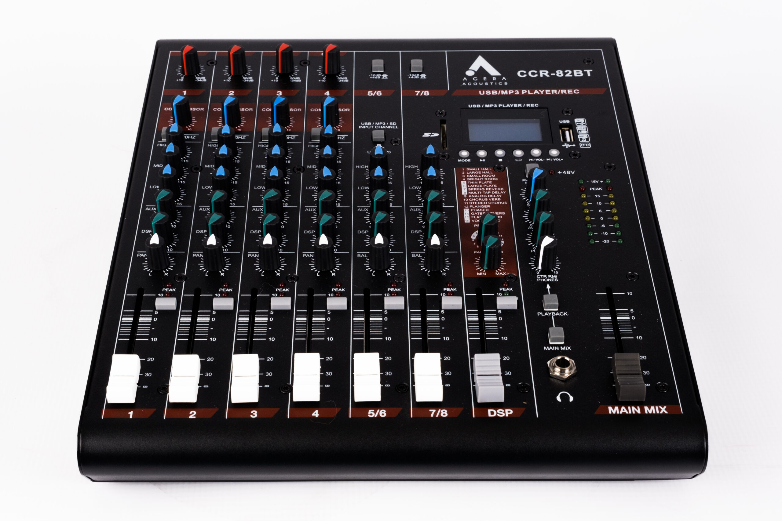| Agera Acoustics is proud to offer our range of analog mixing consoles which have been miticulously designed from the ground up, with you, the cnosumer in mind. Our mantra of providing customers with the ultimate in quality performance for the cost, is extended throughout the range of consoles we have painstakingly engineered. All our consoles, from the smallest format, to our largest format, feature “A” grade, British pre-amps for the cleanest sound reproduction possible. Our “BT” series mixers include a media player incorporating bluetooth, USB, MP-3 playback, SD Card and recording functions, microphone and stereo line level inputs, as well as a built-in effects unit and compressors on each mic channel. This makes the “BT” series a clever, all-in-one solution for the gigging one man band, up to a full band requiring mutliple inputs and functionality. Our “U” series consoles have extended sweepable mids, 4 Aux channels, effects unit with 100 built-in effects and a built-in USB interface, while our flagship console, the CCR-2642 PRO includes all the above functions, plus separate phantom power on each mic channel, sweepable low and high mids on eq function, and 6 aux channels, as well as separate sub groups (4 sub groups) and main left and right output control. So, what are you waiting for. Come join our family. There’s an Agera Acoustics console waiting to help fulfil your musical destiny. |