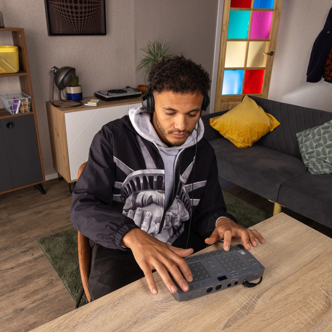 Portable and lightweight, CHORDCAT slips easily into a small bag for mobile creativity. Power it with six AA batteries or USB Type-C for extended sessions. Whether composing at home, performing live, or traveling, the CHORDCAT adapts seamlessly to your workflow.
