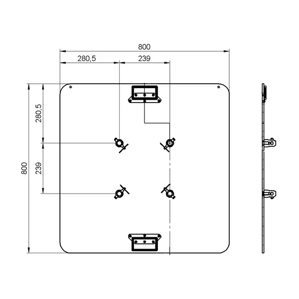 The Alustage Quad 290 Base Plate (800 mm) is a heavy-duty steel foundation plate designed specifically for the Alustage QX / QUAD 290 mm truss series.