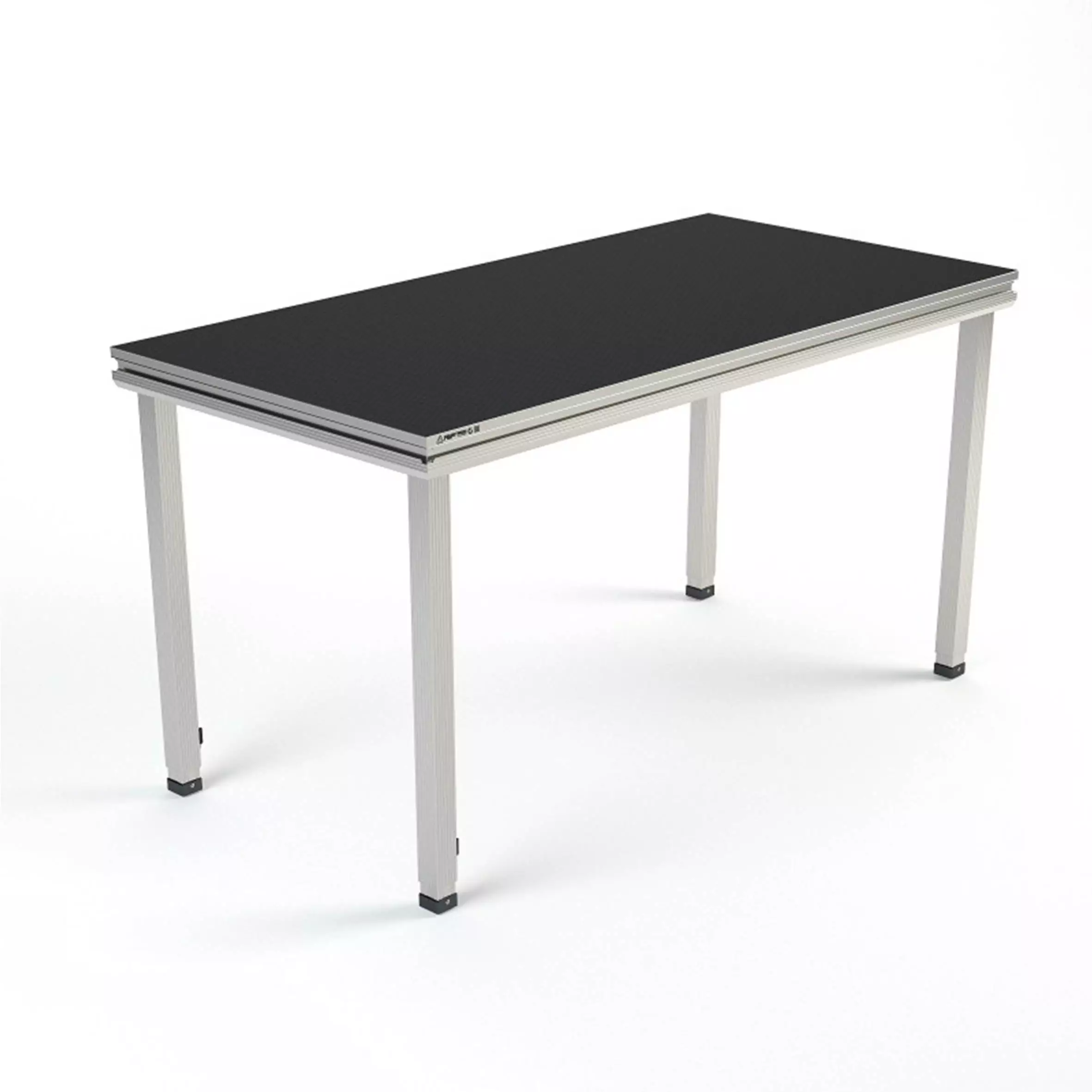 The platforms can be supported by non-adjustable or telestopic legs which make it possible to smoothly and precisely adjust the platform height within 5 different heigh ranges. Rubber feet of the platform legs ensure stability.