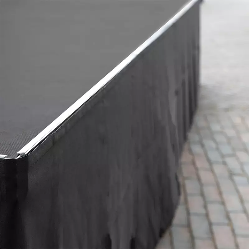 High quality polyester straight skirt for fixing to aluminium stage decks.