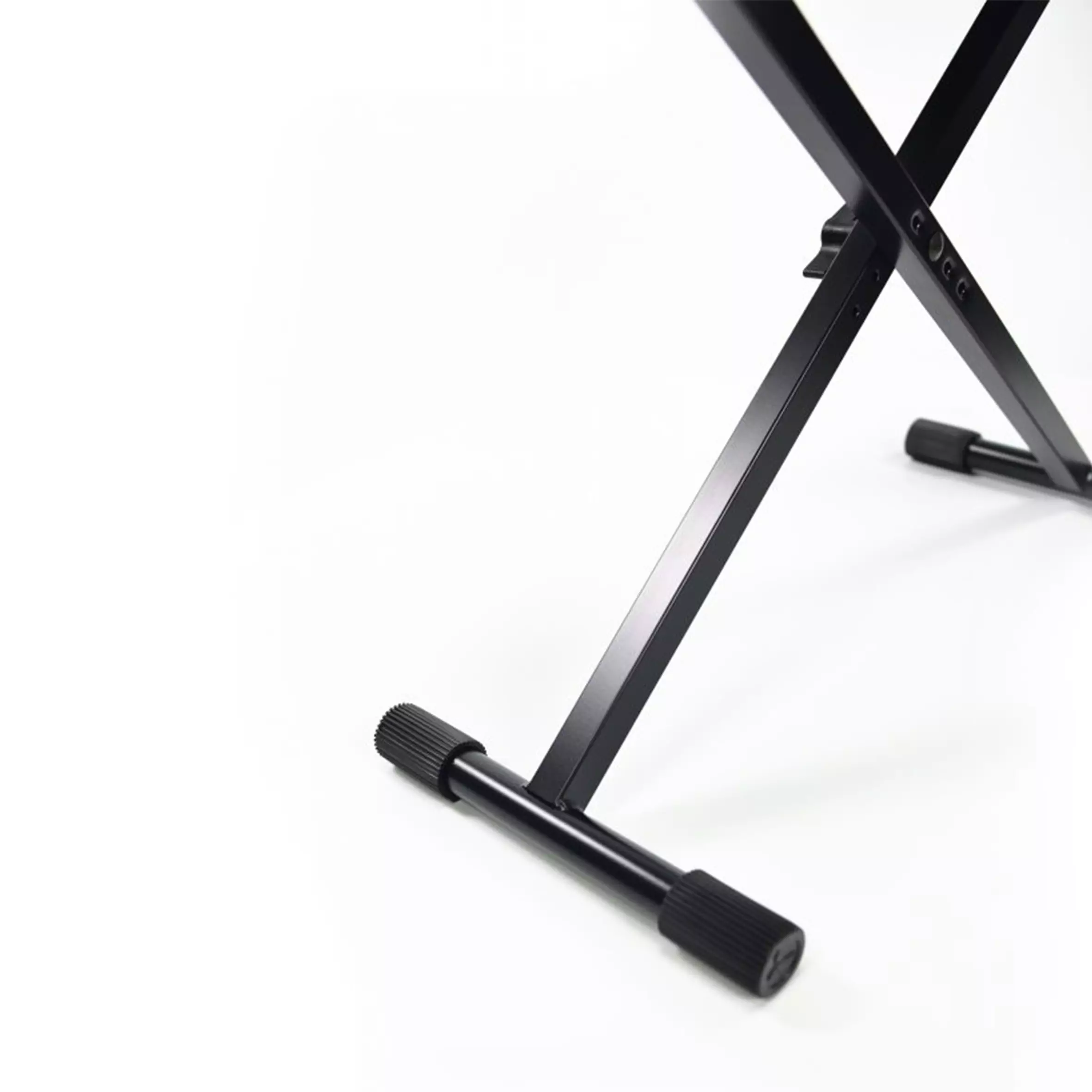 Comfortable bench for keyboard players. Simple and stable construction with regulated height. Comfortable seat made of ecological leather.