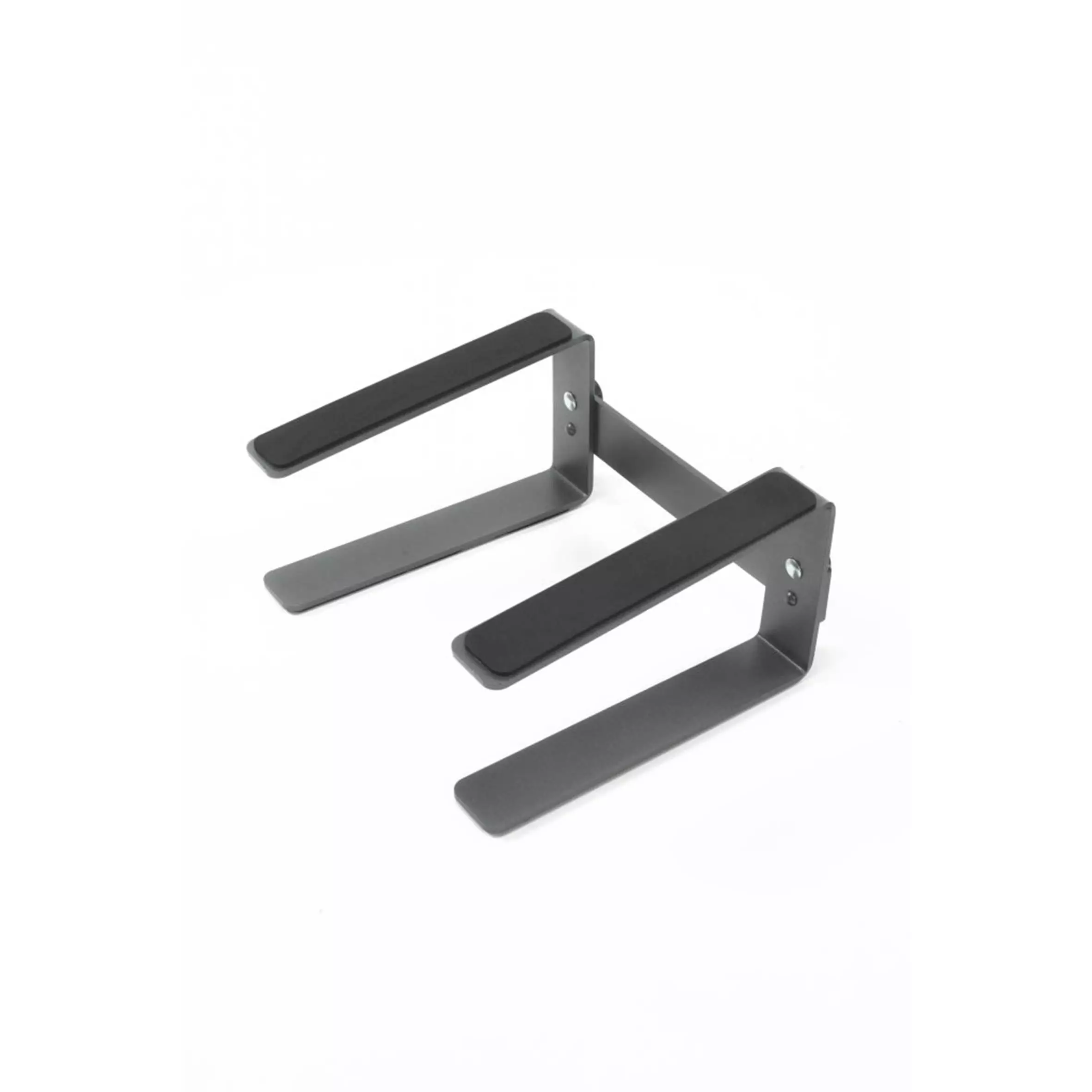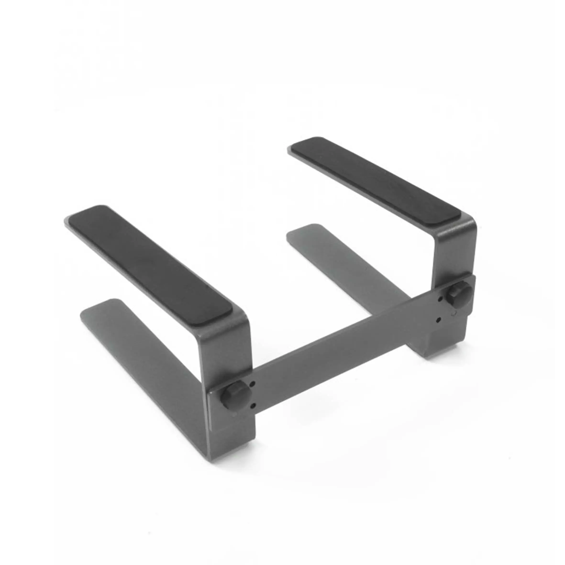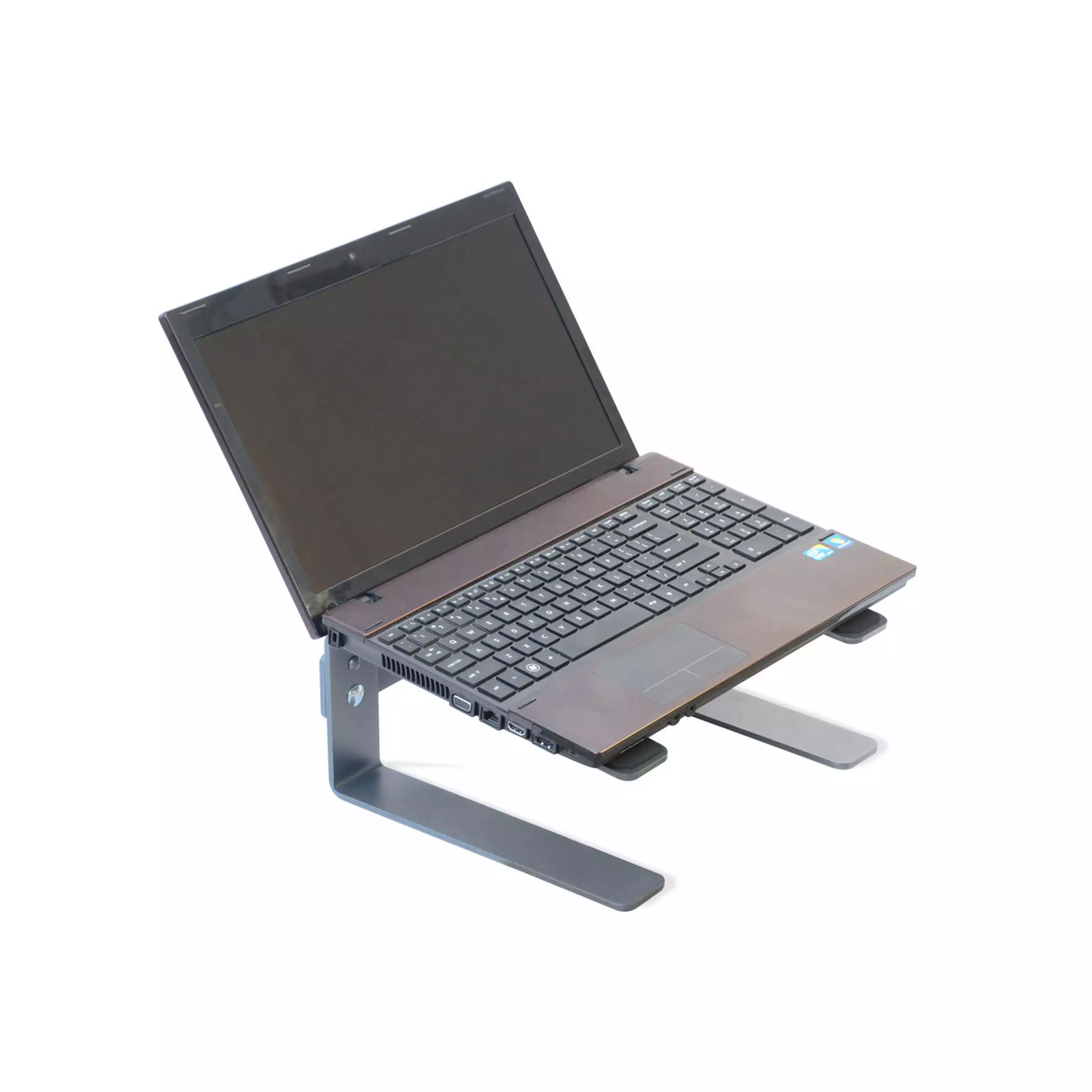 Solid, simple in folding and easy to transport laptop stand with three-step width regulation, Arms of the stand are covered with anti-slide material.