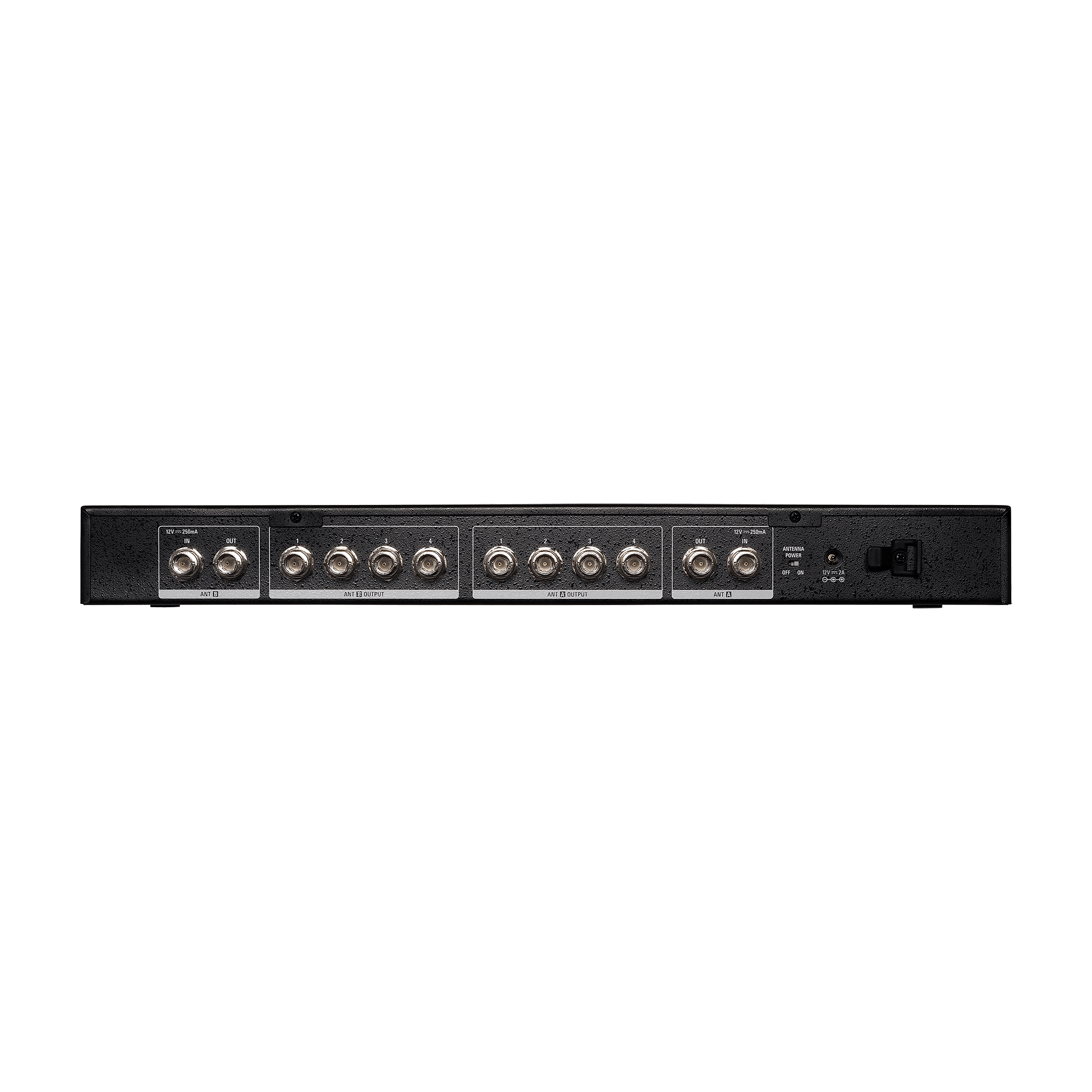 The ATW-DA49a is a UHF active unity-gain diversity antenna distribution system that enables one pair of antennas to feed multiple wireless systems. One ATW-DA49a unit can support up to four wireless receivers. A wide-band unit that operates over a nominal 470-990 MHz range, the ATW-DA49a is designed to complement Audio-Technica’s wireless systems. It is also suitable for many other wireless systems (with external BNC antenna connections) operating within the 470-990 MHz range. Operation is possible with both directly connected antennas and remote antennas. In addition to the four antenna outputs, there is one cascade output per channel which additional distribution systems can be connected to for larger installations. Both antenna inputs provide antenna power for active antennas or boosters.The ATW-DA49a provides a high OIP3 (+ 32 dBm) for maximum protection against intermodulation.