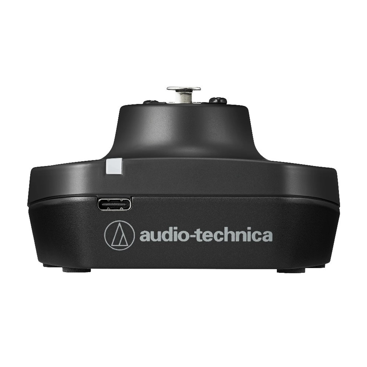 The System 20 PRO operates anywhere in the world in the 2.4 GHz spectrum, well away from potential TV and radio interference. The transmitter’s RF output is fixed at 10mW and the unit offers a maximum transmission range of 200′. Three levels of diversity assurance—frequency, time, and space—ensure reliable audio transmission. A built-in lithium-ion battery powers the ATW-T1407 for up to 12 hours if the accompanying mic has no LED and 8 hours if the mic has an LED. The battery is recharged in 3 hours and 10 minutes via the USB-C port; a USB charger and cable are supplied. The system can be expanded with additional transmitters and receivers to accommodate up to 20 mic channels simultaneously.