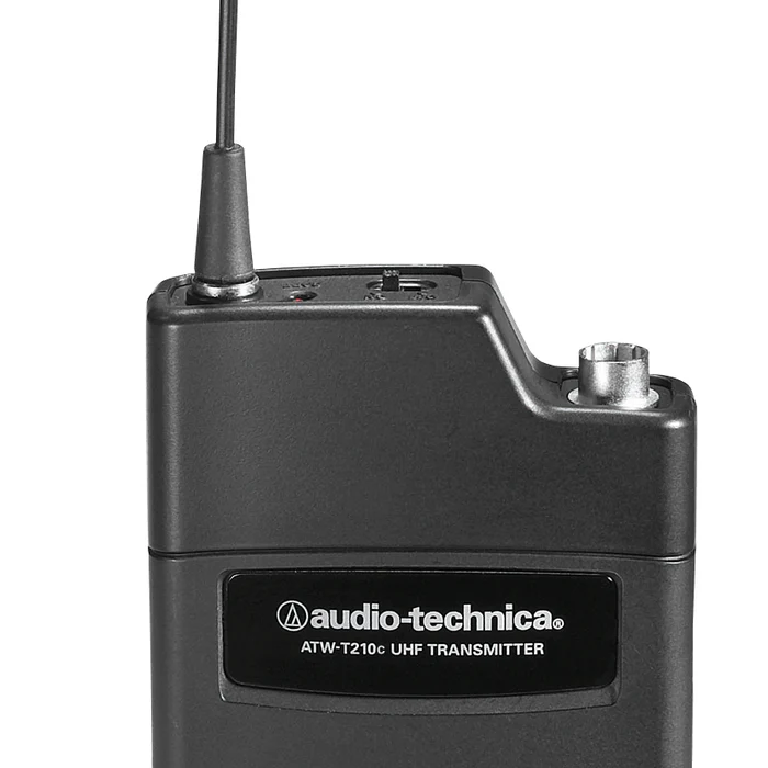 The Audio-Technica ATW-T210c is a 2000 Series bodypack transmitter compatible with the ATW-R2100c receiver. It features an input-level trim and a 4-pin cW-style locking connector to accommodate the cW-style lavalier or headset microphone of your choice, or an adapter cable for guitar and bass. Comfortable to wear, the transmitter provides natural audio to presenters, clergy, lecturers, and performers working in business and educational settings, houses of worship, theaters, or on musical stages.