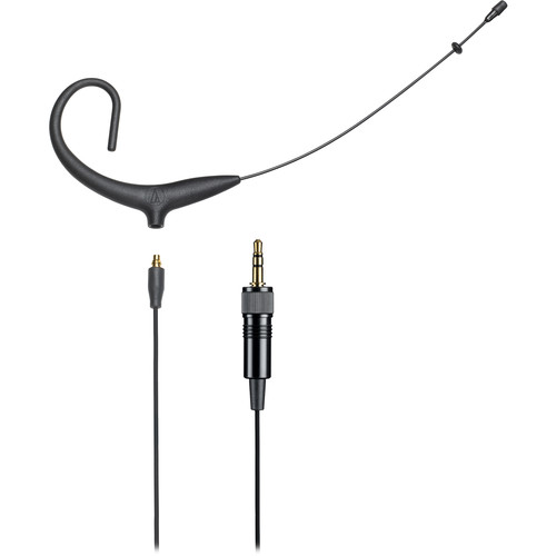 The black BP892xCLM3 Omnidirectional Earset and Detachable Cable with cLM3 Connector from Audio-Technica is a low-profile, high-performance headworn microphone delivering clear and accurate sound in an inconspicuous package. It can be used when paired with a transmitter and receiver (sold separately) to capture audio for live stages, theaters, television talents, lecturers, and worship leaders.