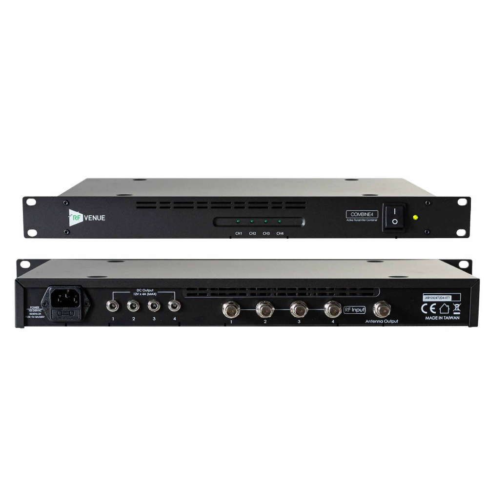 The COMBINE4 active IEM transmitter combiner brings together up to four in-ear monitor transmitter signals into a single, more powerful transmit antenna, eliminating the use of problematic multiple antennas while lowering the buildup of unwanted Intermodulation.