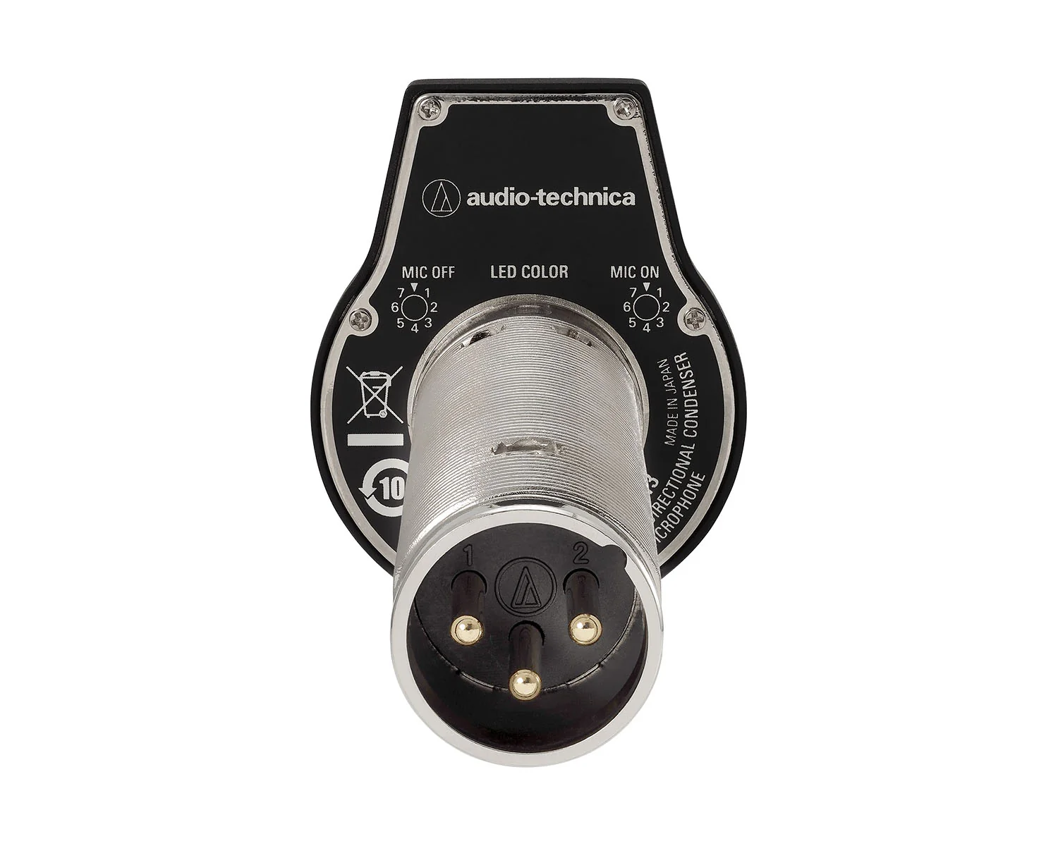 This phantom-powered omnidirectional condenser boundary microphone features a 3-pin XLR output connector with a capacitive touch switch that enables local muting of the microphone.
