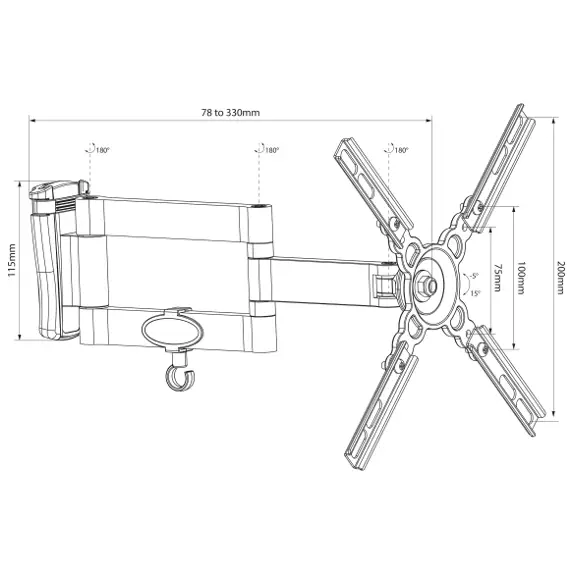 A compact, fully adjustable, double arm steel wall bracket suitable for mounting screens from 13″ up to 40″. Bracket detaches from wall mount for easy installation.
