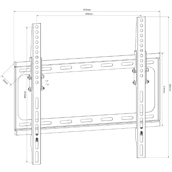 - TV fixing screws provided: 4 x M4 25mm, 4 x M5 25mm, 4 x M6 25mm, 4 x M8 25mmDistance from wall 25mm