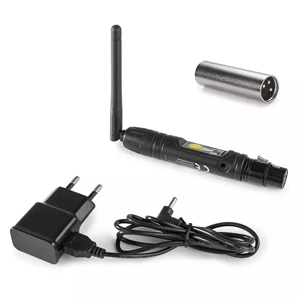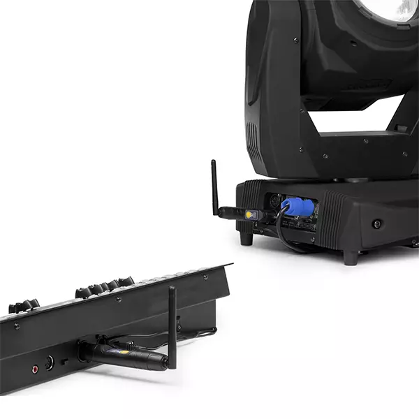 A compact wireless DMX transmitter/receiver which can control up to 7 universes. Universes are marked with a coloured LED in the chassis. You can use multiple receivers on a single transmitter.