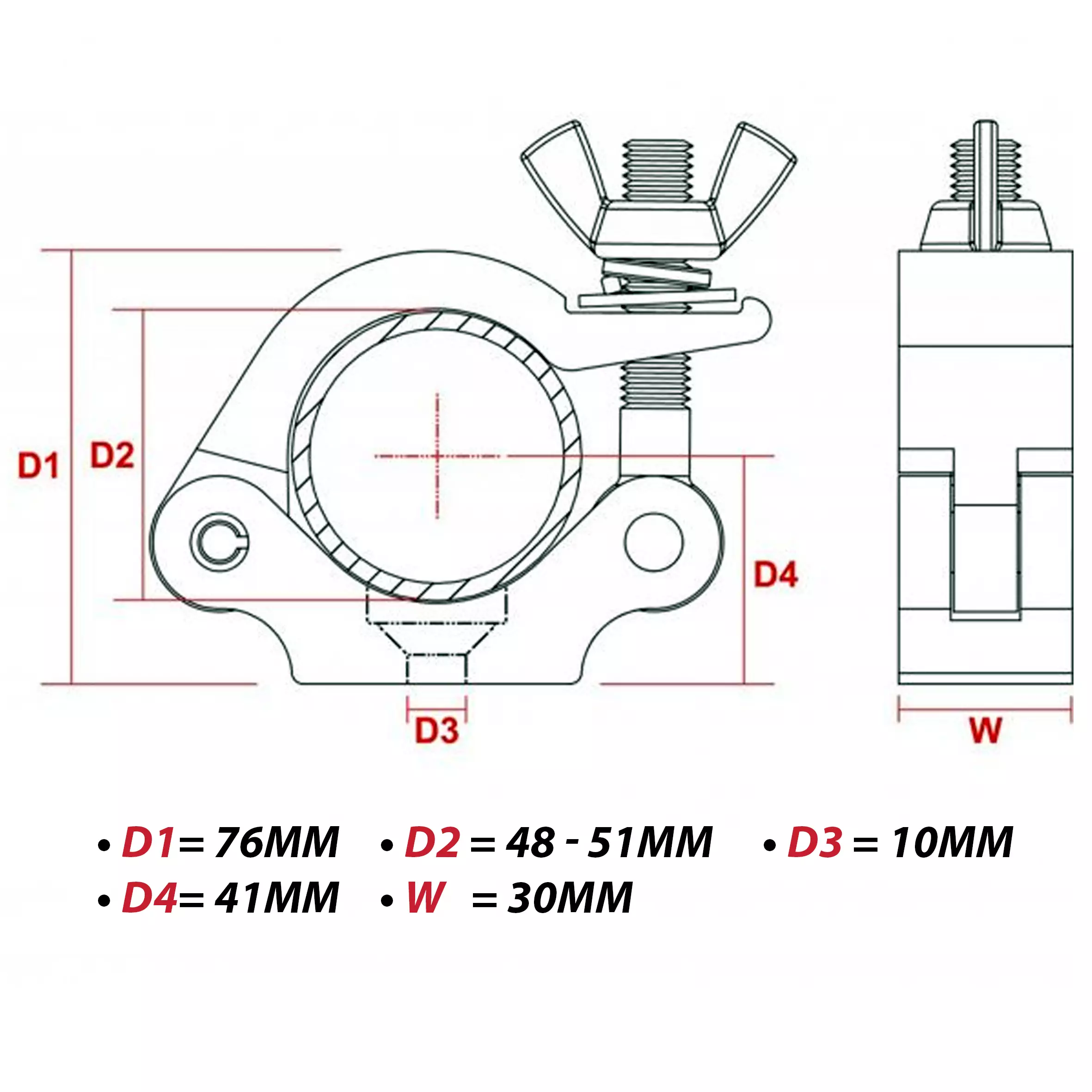 Heavy duty universal compact aluminium slimline half coupler for pipe and truss mounting fixtures. High-strength aluminum construction