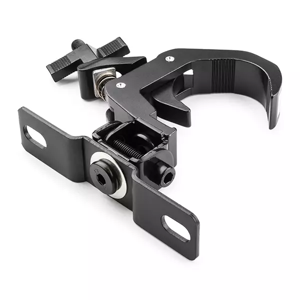 The universal Moving Head Clamp with quick release system makes it possible to transport moving heads with mounted clamp in flight cases thanks to its unique tilt system. These clamps are suitable for most moving head models, are made of die-cast aluminum and are easy to mount on various tube and truss systems. Equipped with a safe and ergonomic handle.