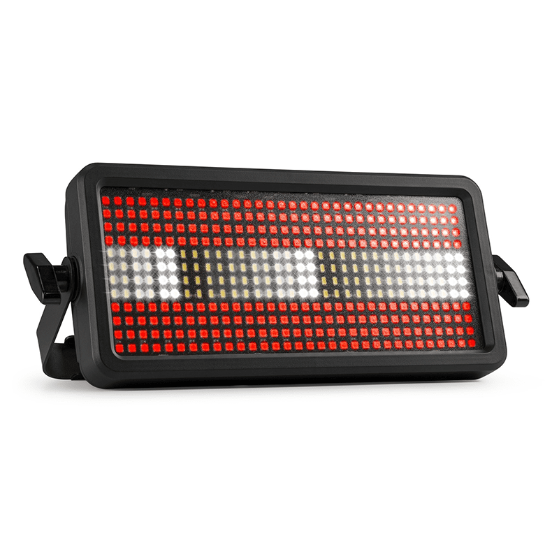 The BS384 is a multi-use fixture and is specially designed to be used as a strobe, thanks to the 384 SMD LEDs. The LED panel is divided in different sections and can flash in any colour you desire thanks to its RGB mixing system. This fixture is also equipped with a strip of 128 white SMD LEDs in the centre of the fixture, controllable in different sections to create the traditional look of a strobe. The BS384 makes it possible to create unique colourful effects and control is easy via DMX or in stand-alone mode with automatic function. Suitable for all kind of shows and events.