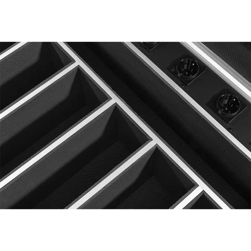 The BeamZ FCC12 Charging Flightcase is the perfect solution for safely transporting and charging BBP612 series wireless battery bar fixtures. This durable, rolling road case with easily handles is the perfect solution for mobile use. When the show is over, simply connect the fixtures to the internal charging module and use the external plug to connect directly into standard wall voltage. The next day, your fixtures are fully charged and ready to go again. Each case holds up to 6 fixtures with enough space for all power cables.