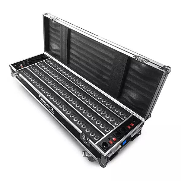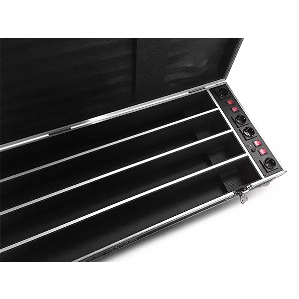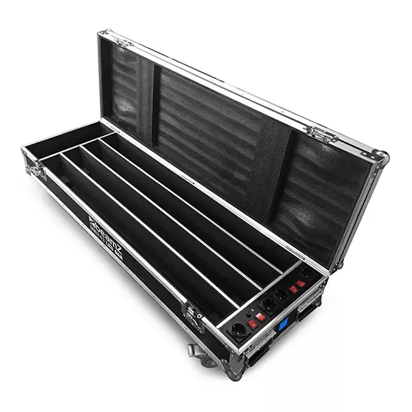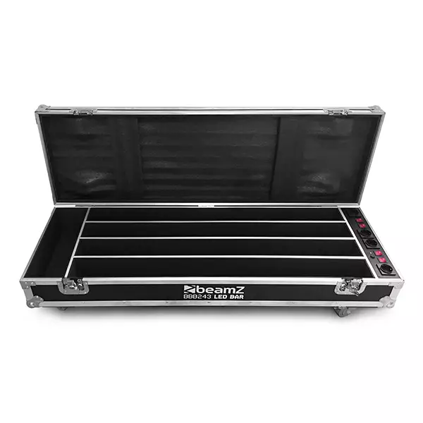The BeamZ FCC14 Charging Flightcase is the perfect solution for safely transporting and charging BBB243 battery LED BAR fixtures. This durable, rolling road case with easily handles is the perfect solution for mobile use. When the show is over, simply connect the fixtures to the internal charging module and use the external plug to connect directly into standard wall voltage. The next day, your fixtures are fully charged and ready to go again. Each case holds up to 4 fixtures with enough space for all power cables.