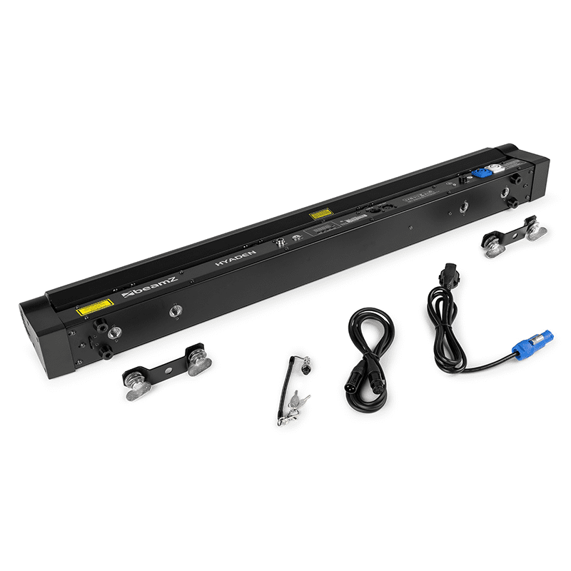 The Hyaden Moving Bar is a dynamic lighting fixture that combines 7 powerful Fat LED Beams with 8 intense laser beams for a mesmerising visual experience. This space-filling light effect is ideal for clubs, events, and stages and guarantees spectacular RGBW light effects and precise laser projections. The DMX control allows for seamless customization, while the robust design ensures durability and reliability in any environment. The Hyaden is perfect for creating high-energy atmospheres and offers a versatile solution for DJs, cafés/nightclubs, and other lighting professionals looking to enhance their light shows.