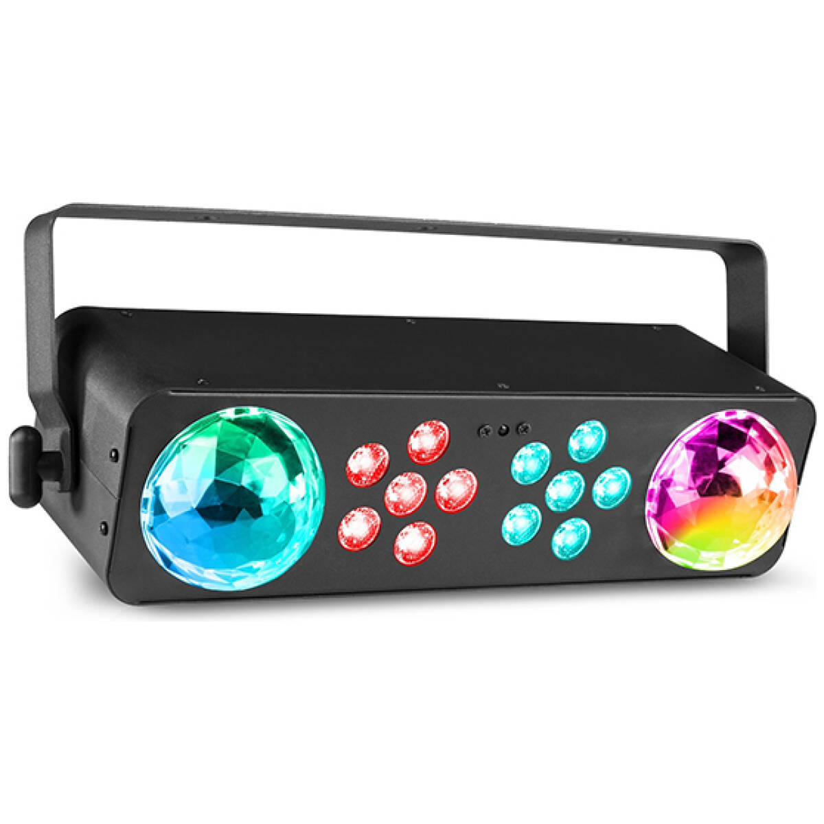 - 2-in-1 Effect with double moon flower and double PAR Moon Flower effect with 12 x 2W RGBAWP LEDs PAR LED Lights with 12 x 4W RGBW LEDs Both effects separately controllable 8 or 24 DMX channels IR remote control DMX and Stand-alone mode Master/slave function 4 Pre-programmed shows Auto mode with adjustable speed DMX in/output via 3-pin XLR Control panel with LED display