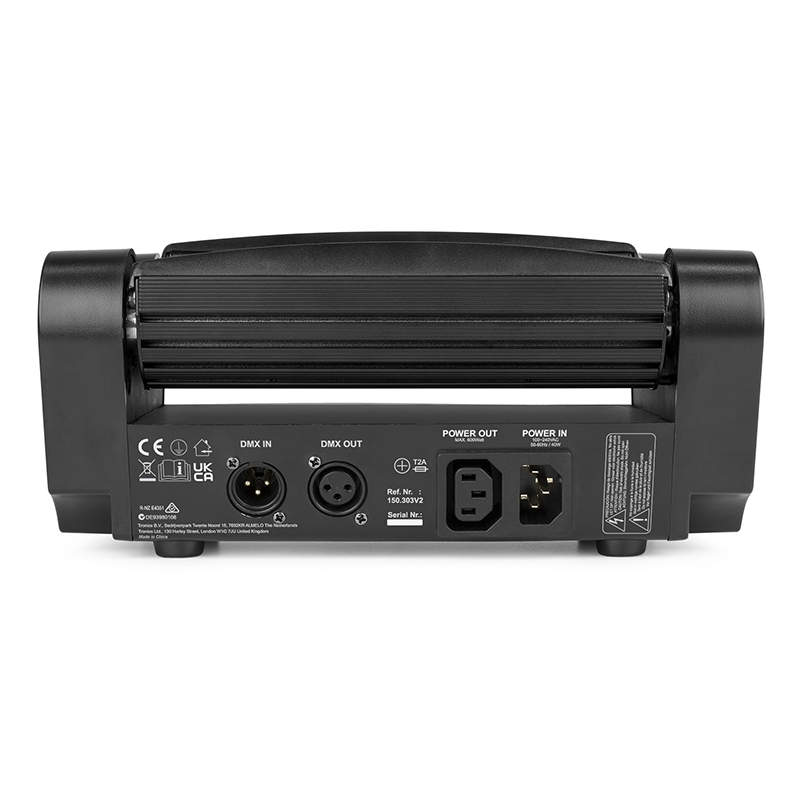 - DMX in/output via 3-pin XLR
