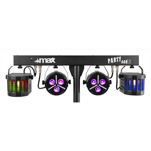 - 2 PAR Cans with 3x 3W 3-in-1 LEDs and 18x SMD Strobe LED