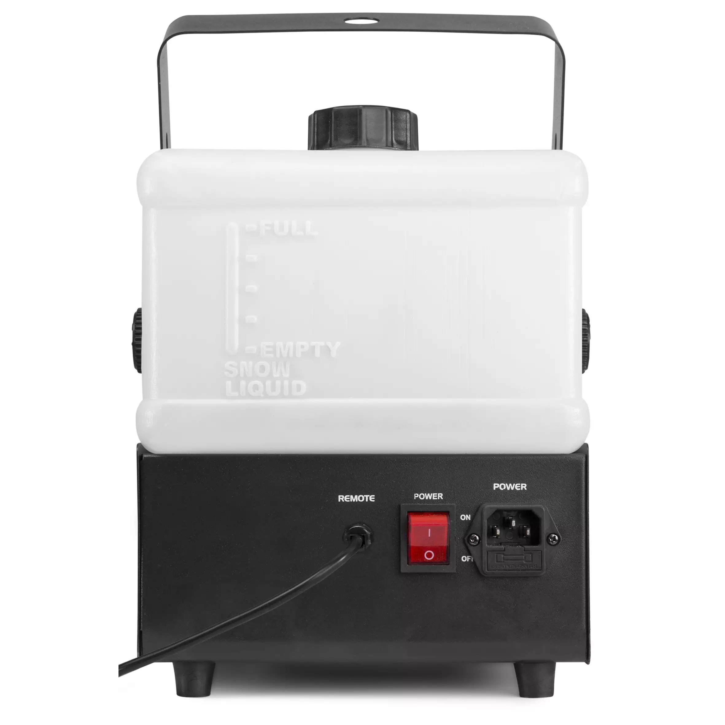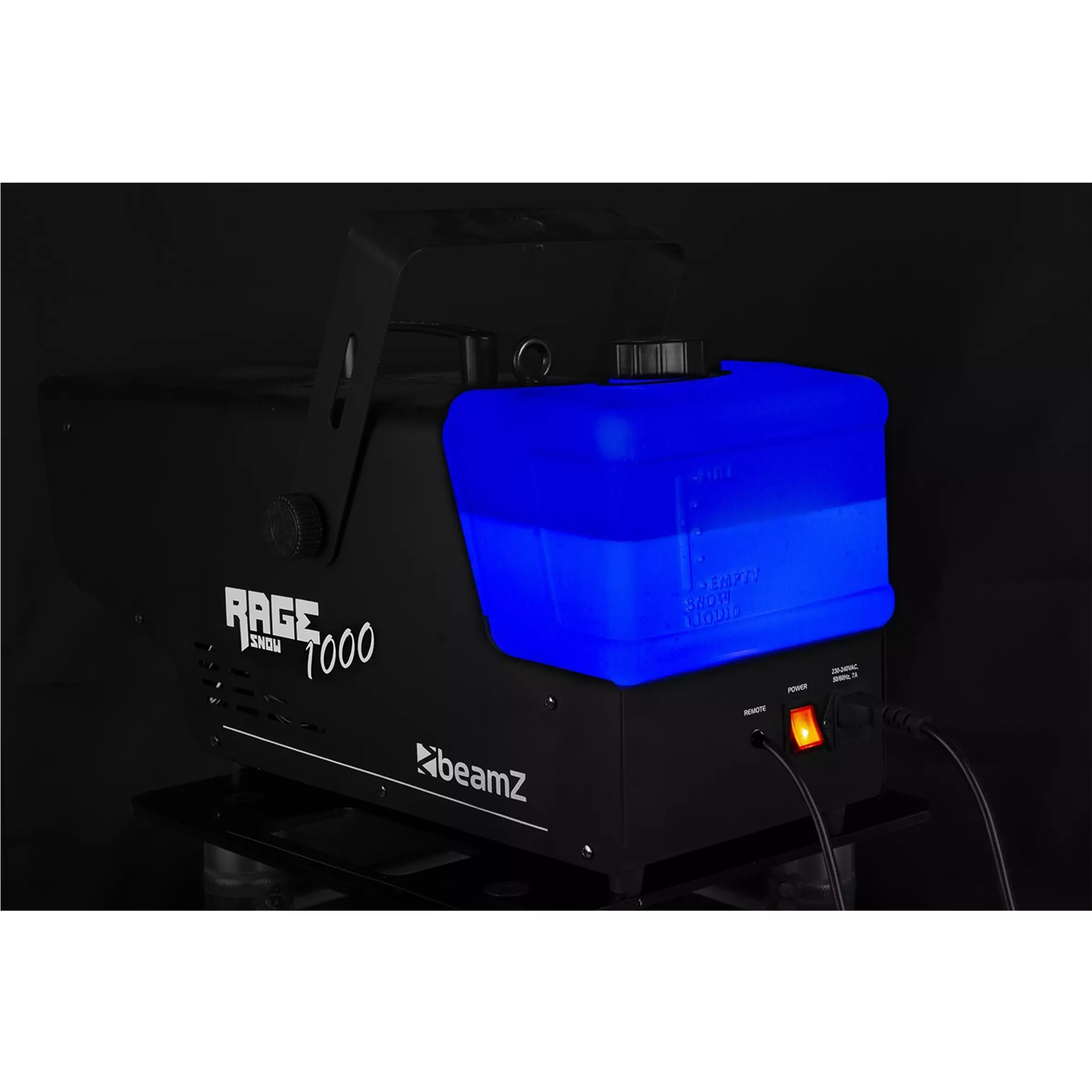 The Rage1000SNOW is a compact high-output snow effect machine built into a metal housing. This snow machine creates a realistic ‘falling snow’ effect with impressive output. Because of the lightweight and compact design it’s easy to carry and use. Supplied with an easy to use remote control attached with a 3m wire and a wireless remote control. This machine is ideal for home party use and seasonal winter events. LED illuminated reservoir makes it easy to check fog fluid level.