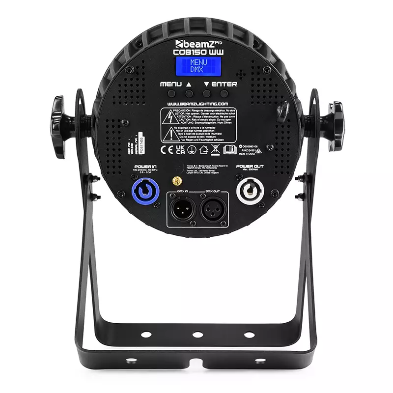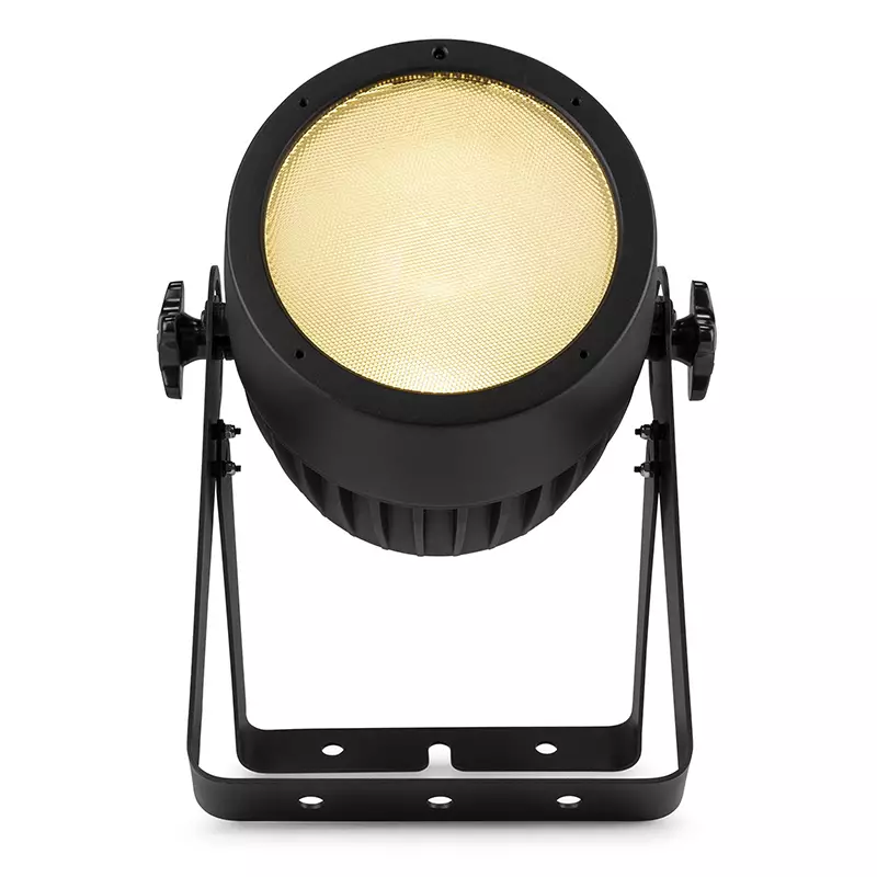 The COB150 is a tough fixture featuring a powerful 150w COB LED, the COB150WW produces intense warm white colour that will light up any stage, party or event. The used COB technology provides very intense light, which is produced via multiple small LED chips that are packaged together into one tiny, yet very powerful module. High frequency LED dimming produces smooth fades and ensures flicker free operation when under a camera. It comes equipped with dual mounting brackets, a remote control and it has a well-structured, easy to navigate LED control panel menu with 4 buttons that make programming very simple! Including extra 60° diffusor filter.