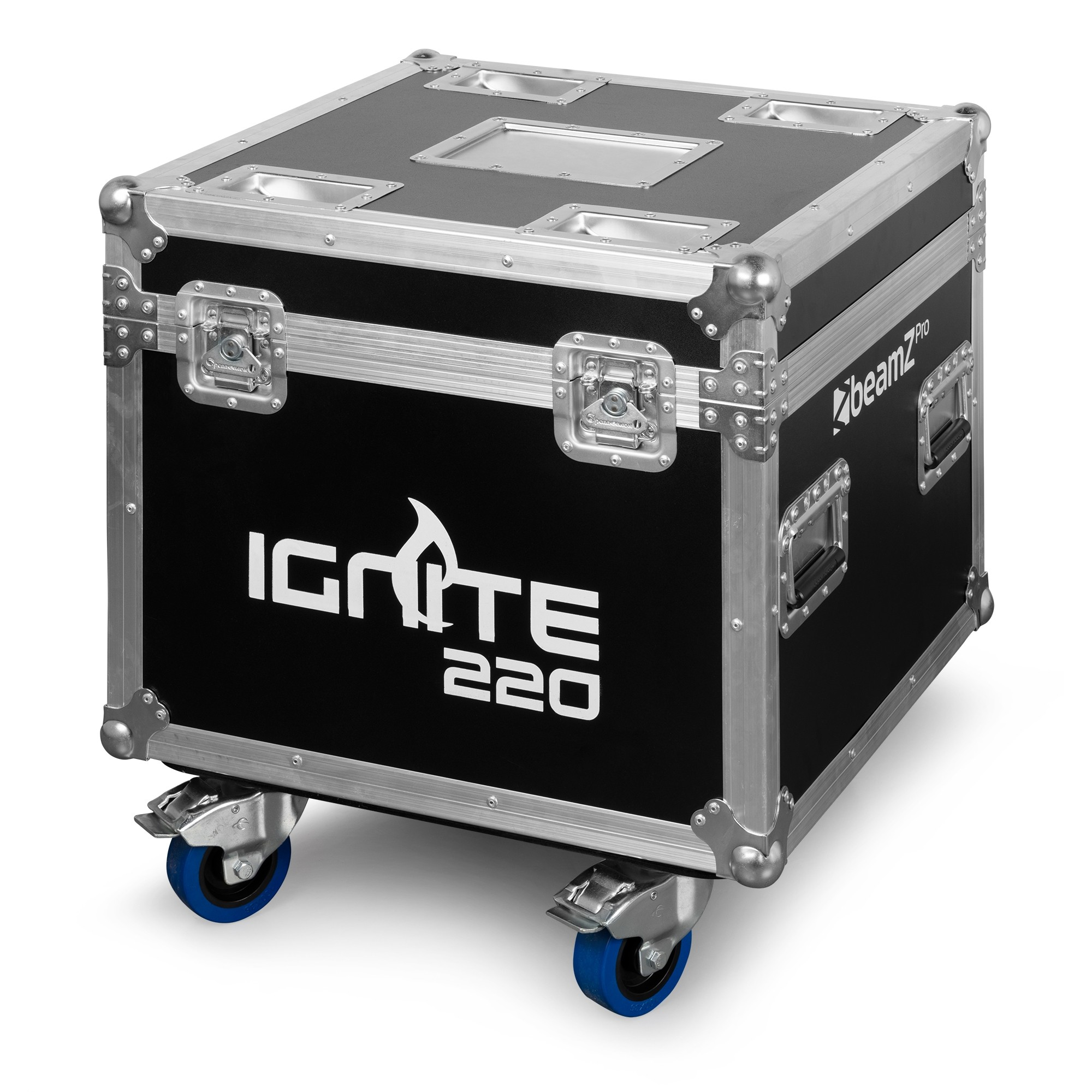 A complete kit of 2 IGNITE220 moving heads supplied in a solid and rugged flightcase. The IGNITE220 is a spot moving head with a linear motorized zoom, equipped with a powerful ultra-bright 220 Watt LED according to the latest technology. This moving heads also features 2 gobo wheels and a 3-facet rotating prism to create stunning 8-color aerial effects. The beam angle of 12 degrees makes this the ideal fixture to use for gobo projection and sharp beam figures. The IGNITE220 is suitable for DMX control in 3 different channel modes, master/slave or stand-alone operation. It includes several show presets, strobe and dimmer functions, and a built-in microphone for sound activation. Perfectly useable for many events and club installs.