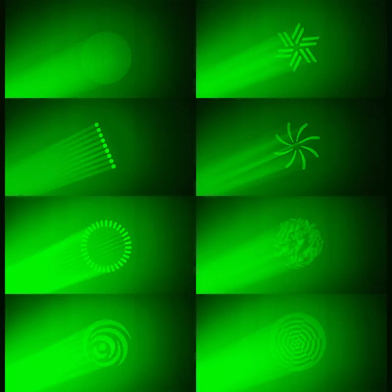 - Gobo functions: gobo shake, gobo rotation and rainbow effect