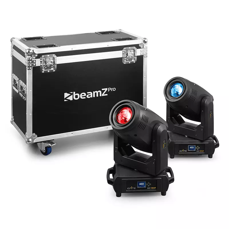 The IGNITE300A Kit is a set of 2 powerful Beam/Spot/Wash moving heads with a powerful 300W bright white LED source and super smooth 3 phase motors. Equipped with an animation wheel, 2 gobo wheels, 2 effect wheels and a rotating 3/6-facet prism to make stunning aerial effects in 8 colours plus white. The linear motorized zoom allows you to focus a beam up to 7° or open up to 32° to cover a wider area with ease. This true all-rounder can be controlled via RDM remote control, DMX, built-in automatic programs and presets, including a master/slave mode. Perfect for stage shows, productions, events, DJs, Bands, Venues, and more. A custom heavy-duty case is also available (option) to protect your fixtures during transport or storage.