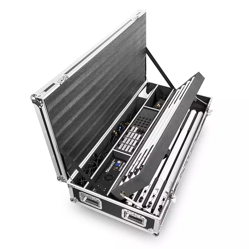 The Kratos Tube Kit comes complete with eight Kratos Tubes and all the essential accessories you need for your next shoot or event, indoor or outdoor. These are all stored in a durable, protective flightcase that comes equipped with wheels and handles for easy transport.