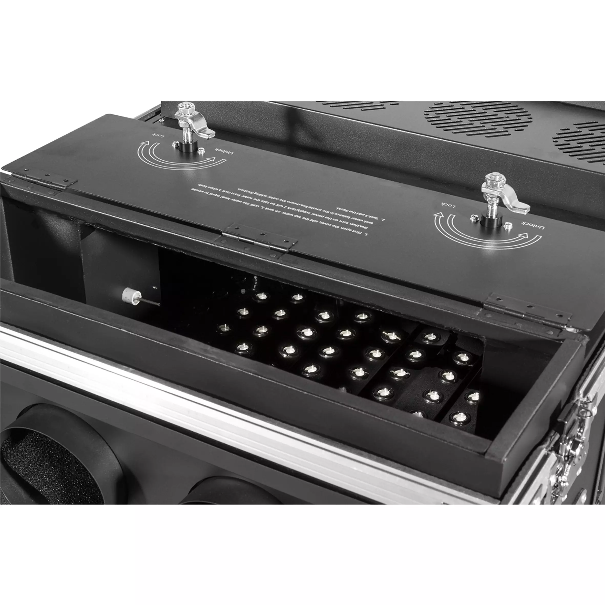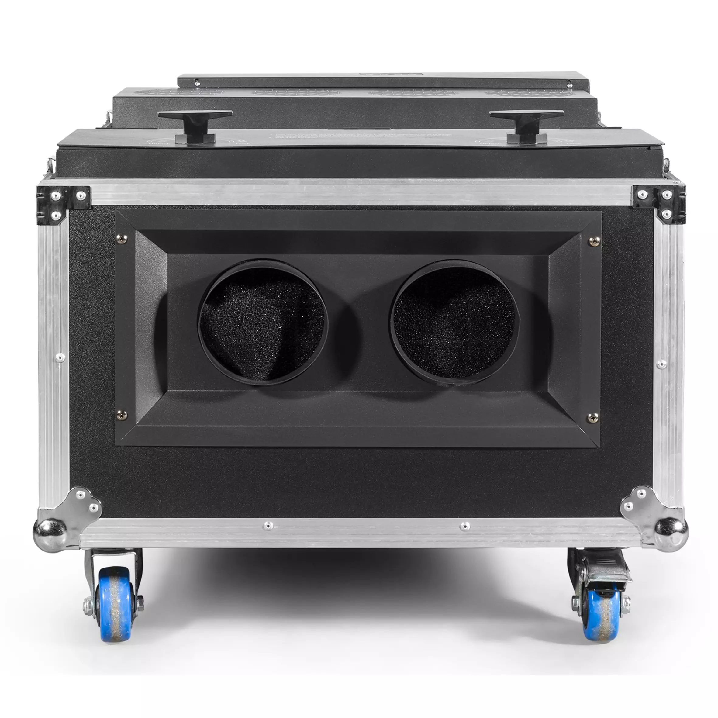 The LF6000 is a professional low fog machine with double outputs that creates continuous low fog on the floor by using ultrasonic technology instead of dry ice. The main fuel is water supplemented with standard smoke fluid! It eliminates the need for Co2, dry ice or separate fog machines, with low using cost and no damage for environment. The LF6000 can be controlled with the on board digital display or DMX. Suitable for medium to big productions/events.