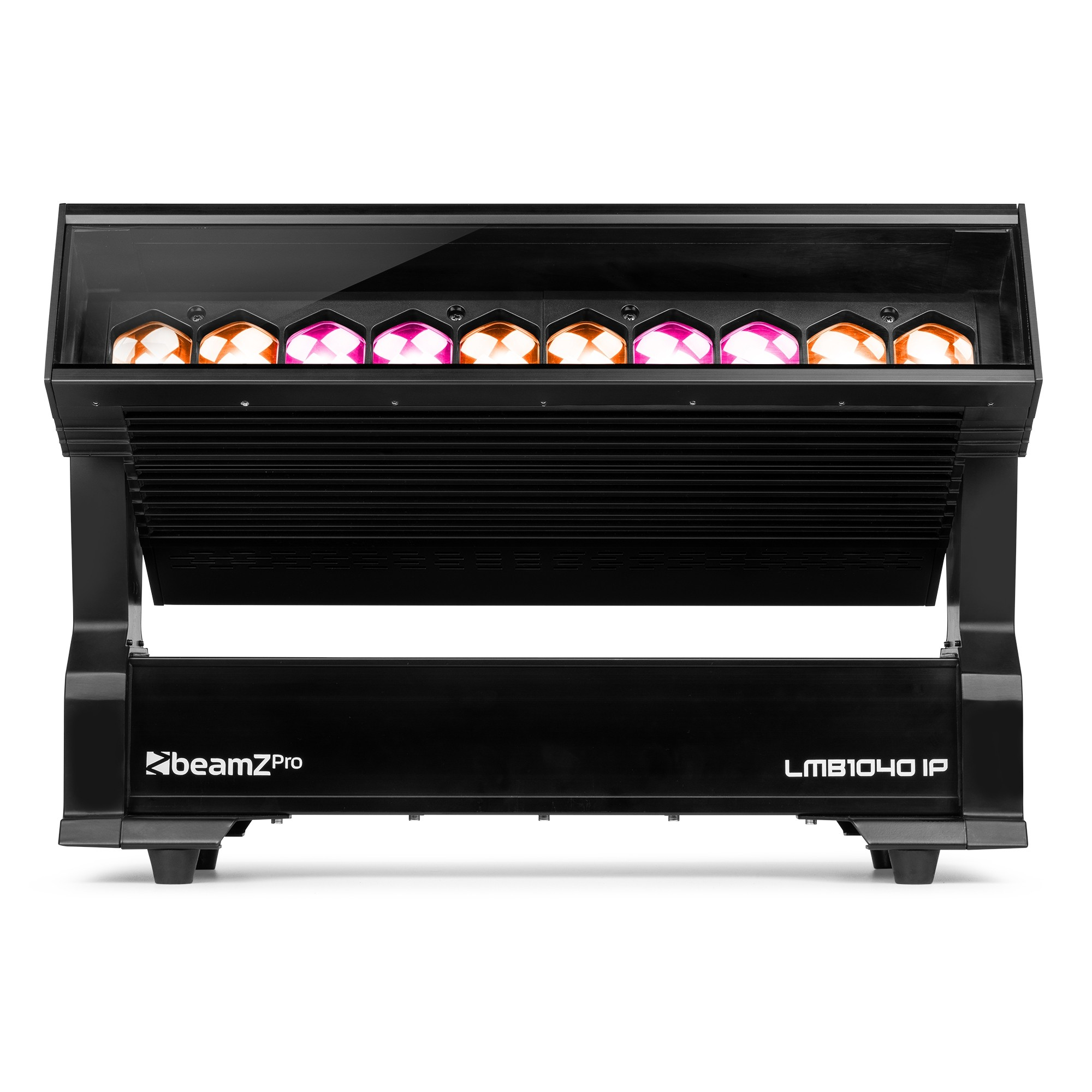 The LMB1040 is a high-performance weatherproof LED bar that produces a powerful zoomable range of movable light via its ten RGBW 4-in-1 40W high-quality LEDs. Each pixel can be controlled individually, and the light output can be easily converted into dynamic bundles full of numerous beams. This bright, moving pixel bar features a zoom range of 3º to 37º, a linear dimmer from 0 to 100%, an electronic strobe and a variable colour temperature from 2,700 K to 8,000 K. The fixture can be used on the ground or can be quickly and easily hung from a truss with the supplied Omega brackets.
