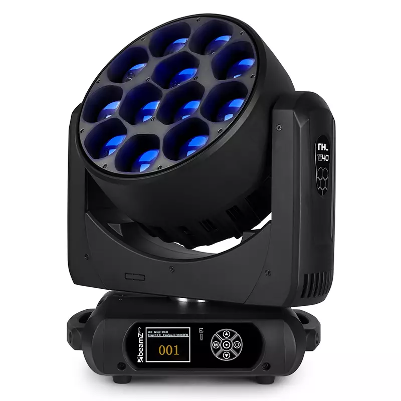 The MHL1240 is a wash moving head with a linear motorized zoom equipped with 12 ultra-bright 40 Watt 4-in-1 LEDs according to the latest technology. This moving head is setup with extremely powerful noise-reducing motors, enabling ultra-fast pan and tilt movement while keeping the noise to a bare minimum. Perfectly useable for many events and club installs.