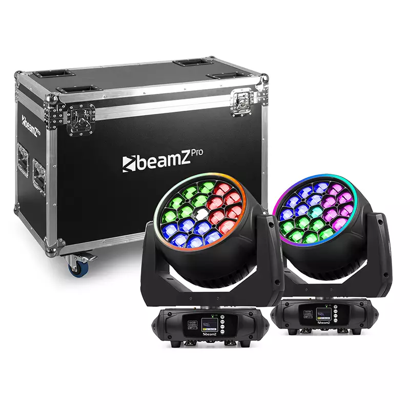 A complete kit of 2 MHL1940 moving heads supplied in a solid and rugged flightcase. The MHL1940 is a wash moving head with a linear motorized zoom equipped with 19 ultra-bright 40 Watt 4-in-1 LEDs according to the latest technology. This moving head is equipped with unique honeycomb design lenses and each LED can be controlled individually to create amazing effects. (Kaleido effects) It’s also setup with extremely powerful noise-reducing motors, enabling ultra-fast pan and tilt movement while keeping the noise to a bare minimum. Perfectly useable for many events and club installs.