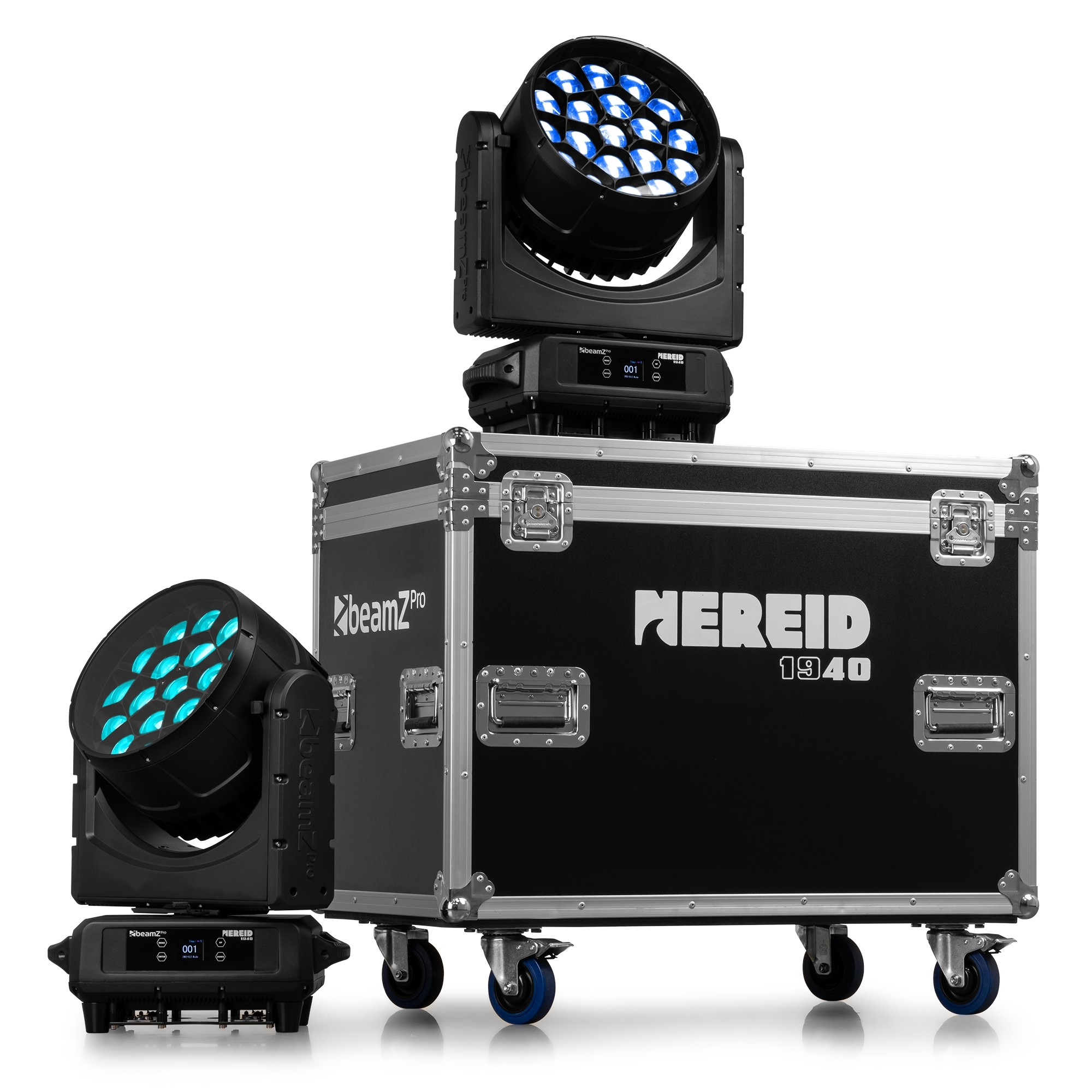 A complete kit of 2 Nereid1940 BeeEye moving heads supplied in a solid and rugged flightcase. The Nereid1940 is a powerful wash/beam moving head with a linear motorized zoom equipped with 19 ultra-bright 40 Watt 4-in-1 LEDs according to the latest technology. This moving head for indoor and outdoor use is equipped with unique honeycomb design lenses and each LED can be controlled individually to create amazing effects. (Kaleido effects) It’s also setup with extremely powerful noise-reducing motors, enabling ultra-fast pan and tilt movement while keeping the noise to a bare minimum. Perfectly useable for indoor and outdoor productions, events and installations that require a greater light output.