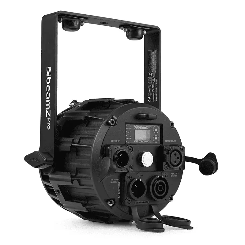 The beamZ Neutron-Dot is a versatile LED hybrid fixture that seamlessly combines style with creativity. This dynamic lighting solution transcends traditional boundaries, making it ideal for a wide range of applications. From serving as an audience blinder and strobe light to functioning as a creative LED pixel mapping surface, eye candy effect light and stage wash, the Neutron-Dot delivers it all in a single compact design.