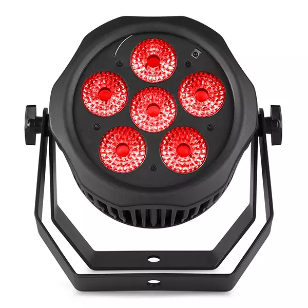 With 6x 12W high power 6-in-1 LEDs this battery operated IP65 PAR is perfect for lighting up a building or any indoor or outdoor surface. Water resistant to IP65 specification with watertight internal gaskets and weatherproof power and data cable in/out connections. No fan – heat is dissipated via the aluminium housing. Includes OLED display, wireless DMX and double yoke ensures the product can be mounted anywhere the user desires. Including remote control.