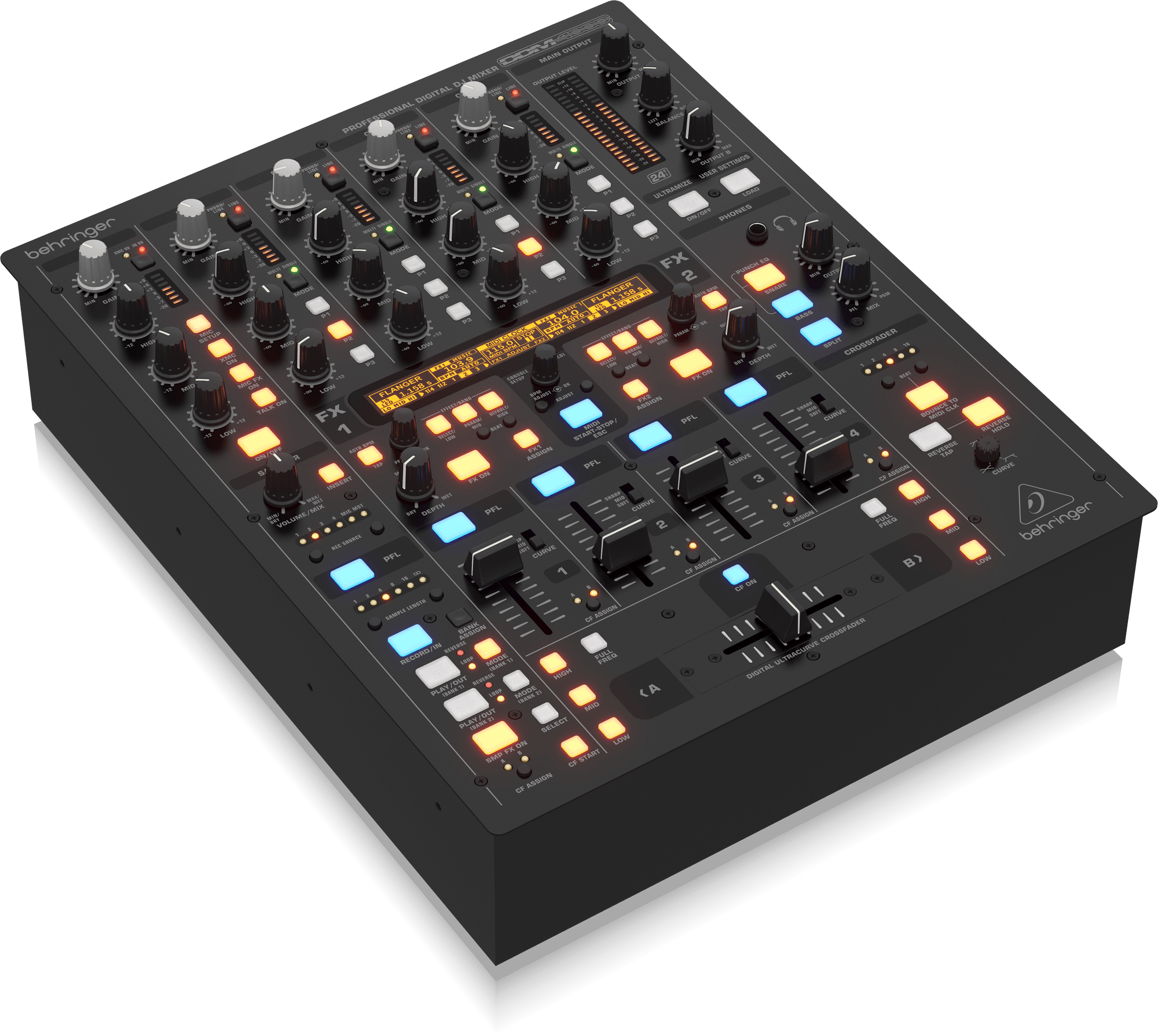 - 32-bit digital DJ mixer with beat-synchronized sampler, 4 multi-FX sections, 2 BPM counters, digital crossfader and MIDI