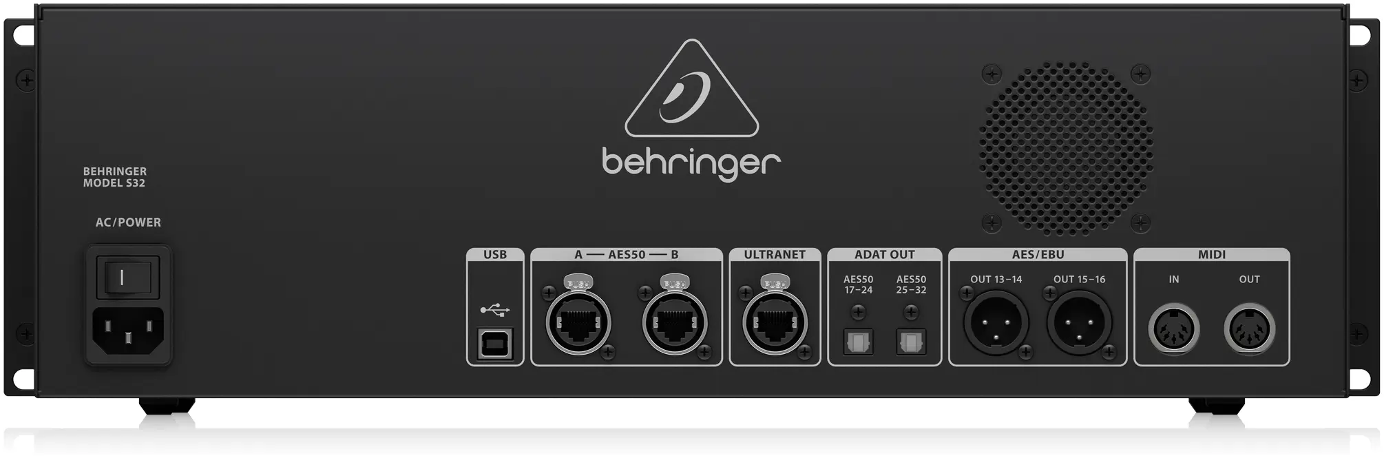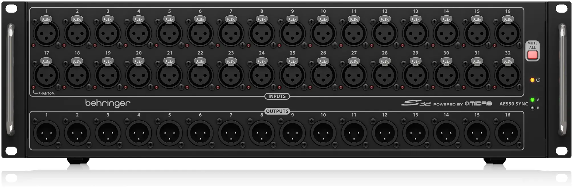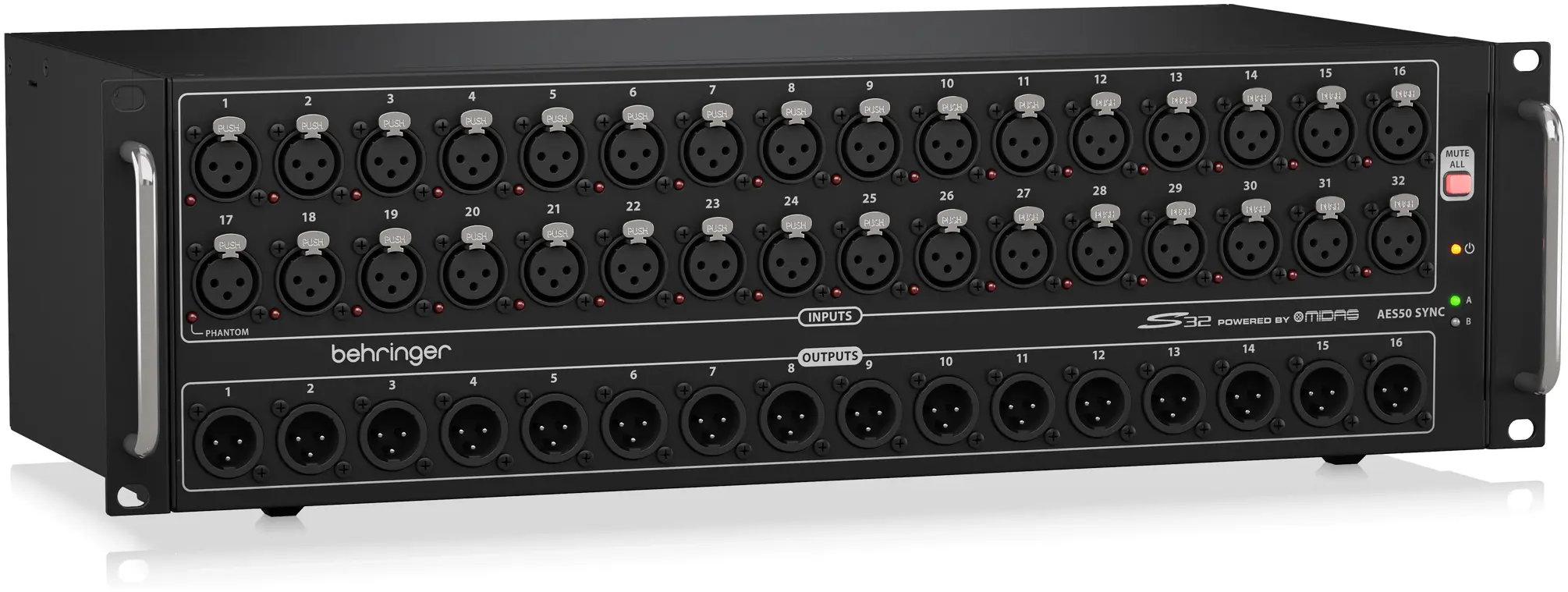 - Automatic AES50 stage-split mode when connected between Behringer X32 Series FOH and monitor consoles
