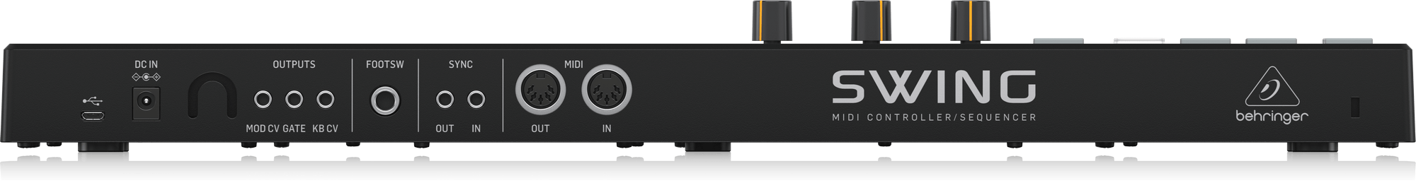 - CV/Gate and Sync connectors for controlling synthesizers, drum machines and other equipment