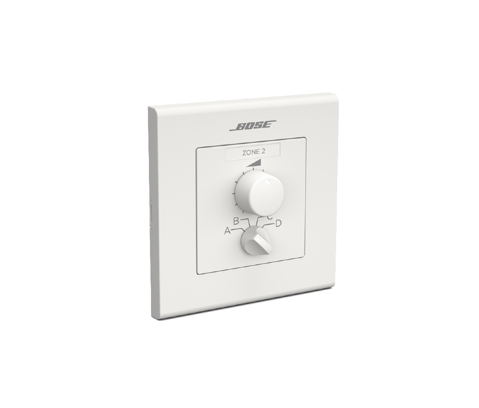 The ControlCenter CC-2-W is a wall-mounted zone controller designed for use with Bose FreeSpace, PowerSpace, and ControlSpace systems. It provides zone volume control and source selection in a simple, intuitive interface.