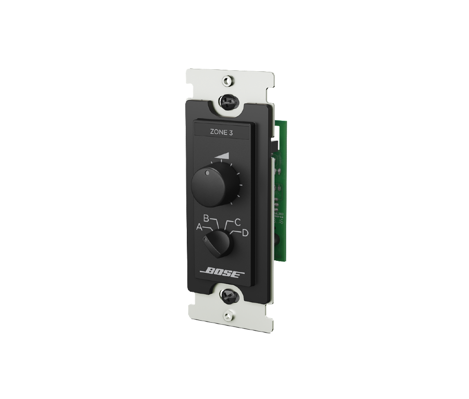 The ControlCenter CC-3B is a wall-mounted digital zone controller designed to provide intuitive end-user control for Bose Professional DSPs, including CSP, ControlSpace ESP, and ControlSpace EX processors.