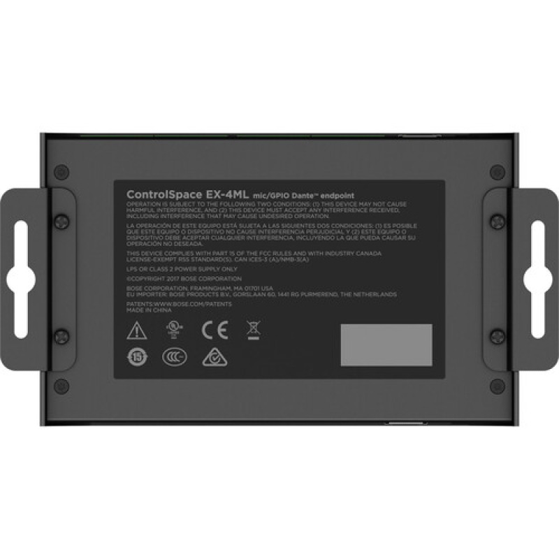 The ControlSpace EX-4ML is a compact Dante endpoint device that provides microphone inputs and GPIO control for integration into conferencing and installed sound systems. With four mic/line inputs, built-in phantom power, and GPIO ports, it is ideal for extending Bose ControlSpace EX conferencing processors and other Dante-enabled systems.