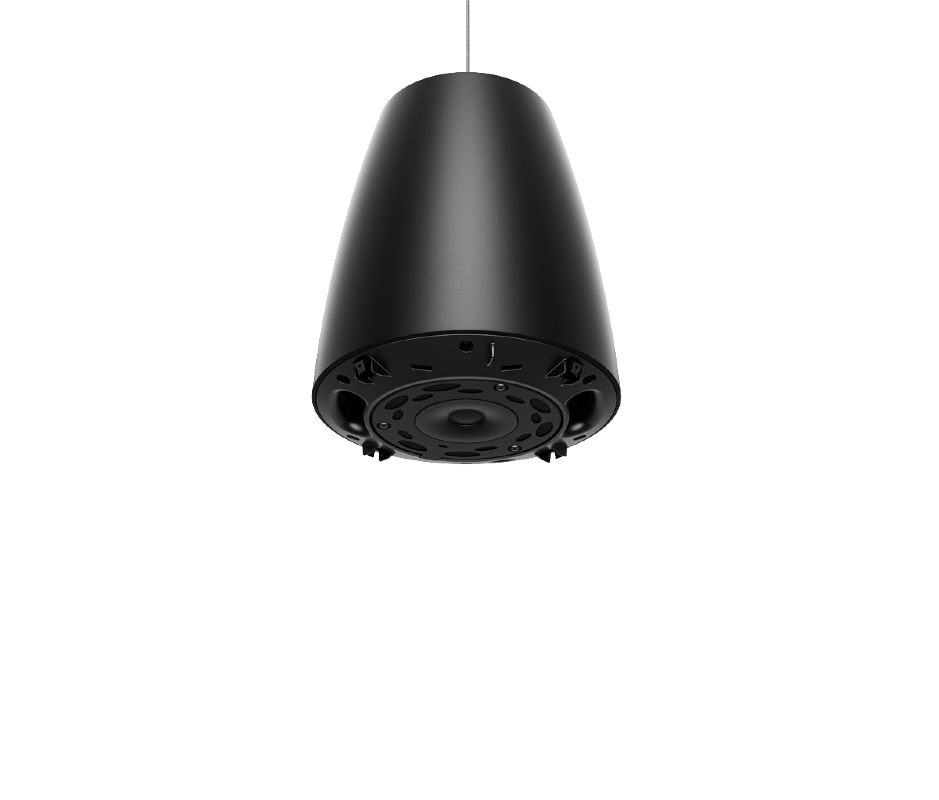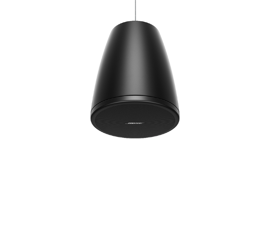 The Bose Professional DM5PB is a 5.25-inch pendant-mount loudspeaker from the DesignMax series, finished in black. With its coaxial two-way design — pairing a 5.25″ woofer with a 1″ tweeter — it delivers clear, rich, full-range sound for both background and foreground music. Its pendant-style enclosure is designed for open-ceiling spaces in restaurants, retail stores, offices, and hospitality venues, blending modern aesthetics with reliable performance.